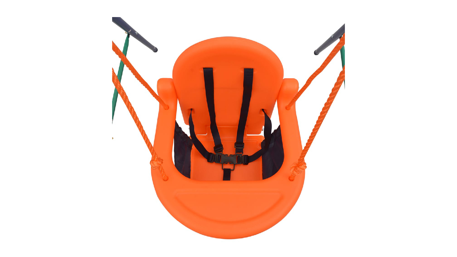 Spark joy in your child's playtime with NNEVL Toddler Swing Set w/ Safety Harness. Perfect for sunny days, this swing set features a comfortable, ergonomically designed seat with a high back, ensuring your child enjoys fresh air in style. With a sturdy steel frame, weather-resistant plastic seat, and a safety harness, this set guarantees both durability and safety for endless playtime joy.
