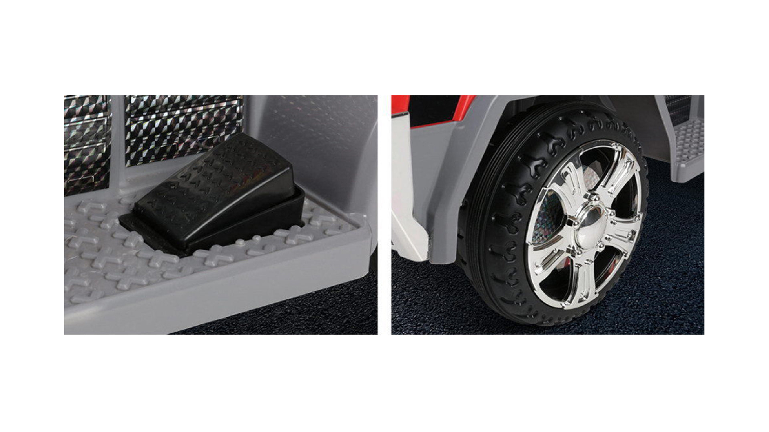 The TSB Living Ride On Car Red Fire Truck with Bubble Gun is the perfect gift for any child who loves to play pretend and be a hero firefighter. It's packed with features that encourage imaginative play, active movement, and coordination. Its realistic design has most of the fittings found in a real one and also includes truck decals, a bubble gun, a movable ladder, an anti-slip seat, emergency lighting, flashing headlights, and reversing taillights. This fire truck provides hours of fun and excitement for kids aged 3 and up.