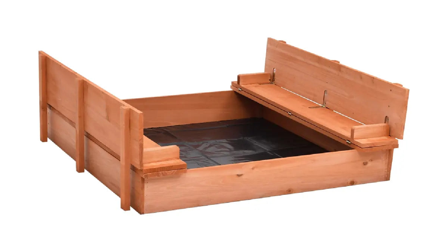 Introducing the NNEVL Sandbox 95 x 90 x 15cm, your gateway to endless outdoor fun! Children will enjoy digging and building with their friends in this sandpit. Its cleverly designed lid can also be folded to form two benches for your little ones to rest on. Plus, we've included a durable nylon groundsheet to shield your children's haven from weed growth, pesky insects, and ground-dwelling critters, ensuring their playtime is worry-free.