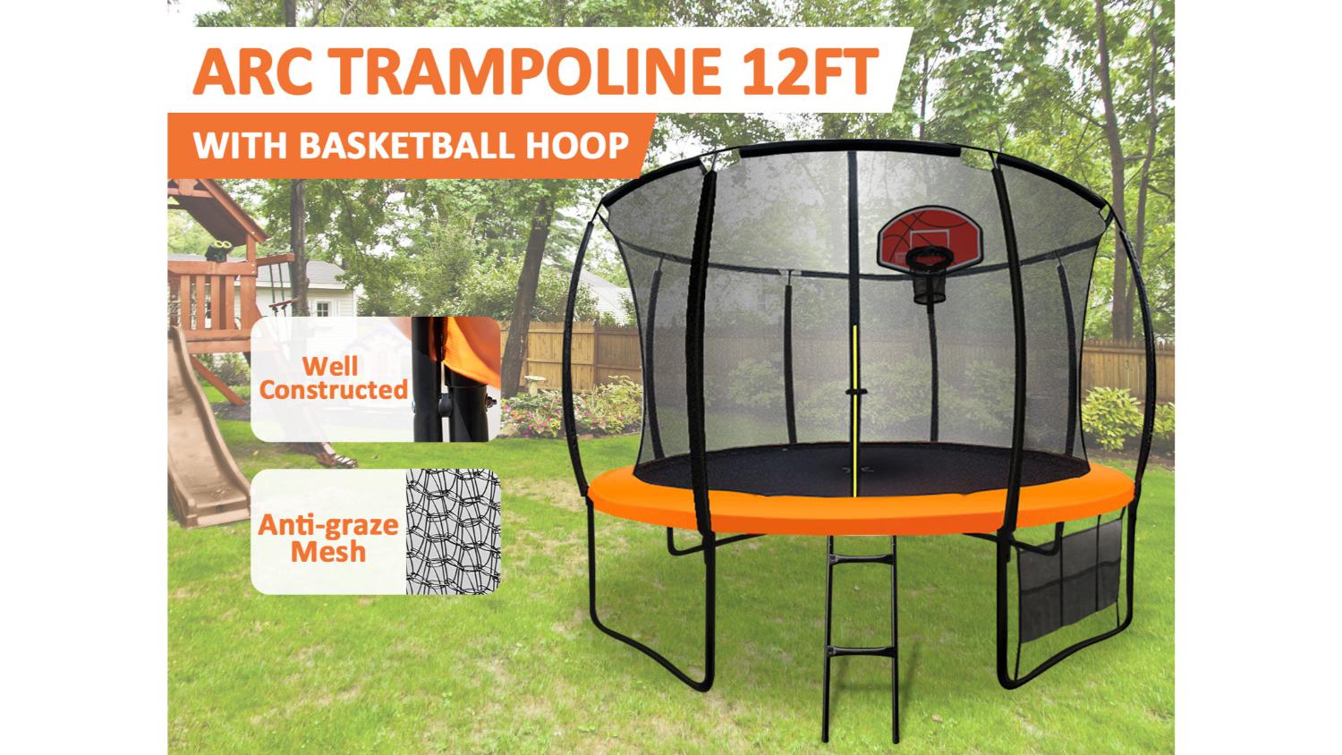 Turn your backyard into a playground of endless joy with the TSB Living Arc Trampoline 3.6m with a Basketball Hoop! Built with a marine-grade hot-dip galvanised steel frame, quality PVC rail padding, and high-density foam-wrapped-ABS-capped safety posts, this trampoline is a fortress of fun. It also features enclosed safety netting, double-lock zip, and clip entry to ensure a worry-free experience, while the UV-resistant jumping mat promises lasting durability.