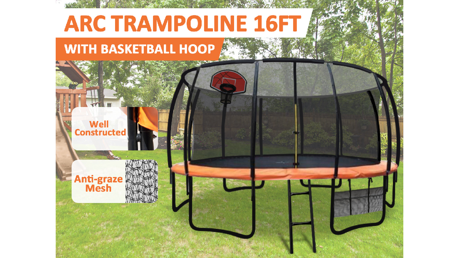 Bounce into excitement with the TSB Living Arc Trampoline 4.8m with Basketball Hoop, where safety meets adventure. With water resistance, triple-rate springs, and enclosed netting, this trampoline offers secure and thrilling entertainment. Its UV-resistant mat and marine-grade steel frame ensure years of fun.