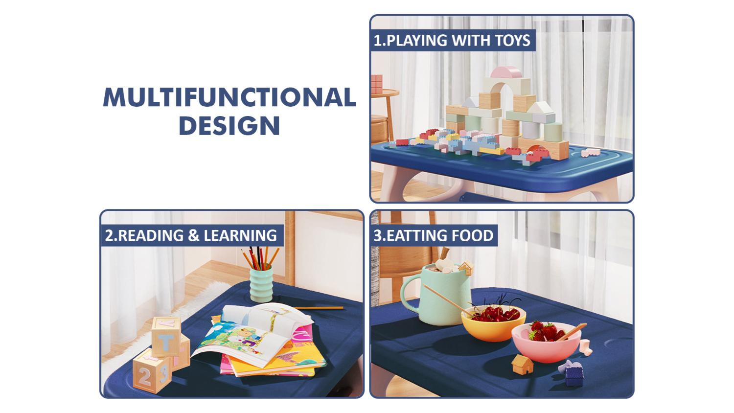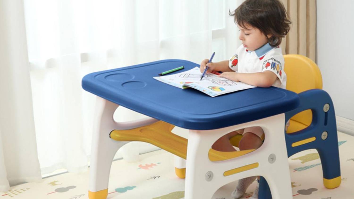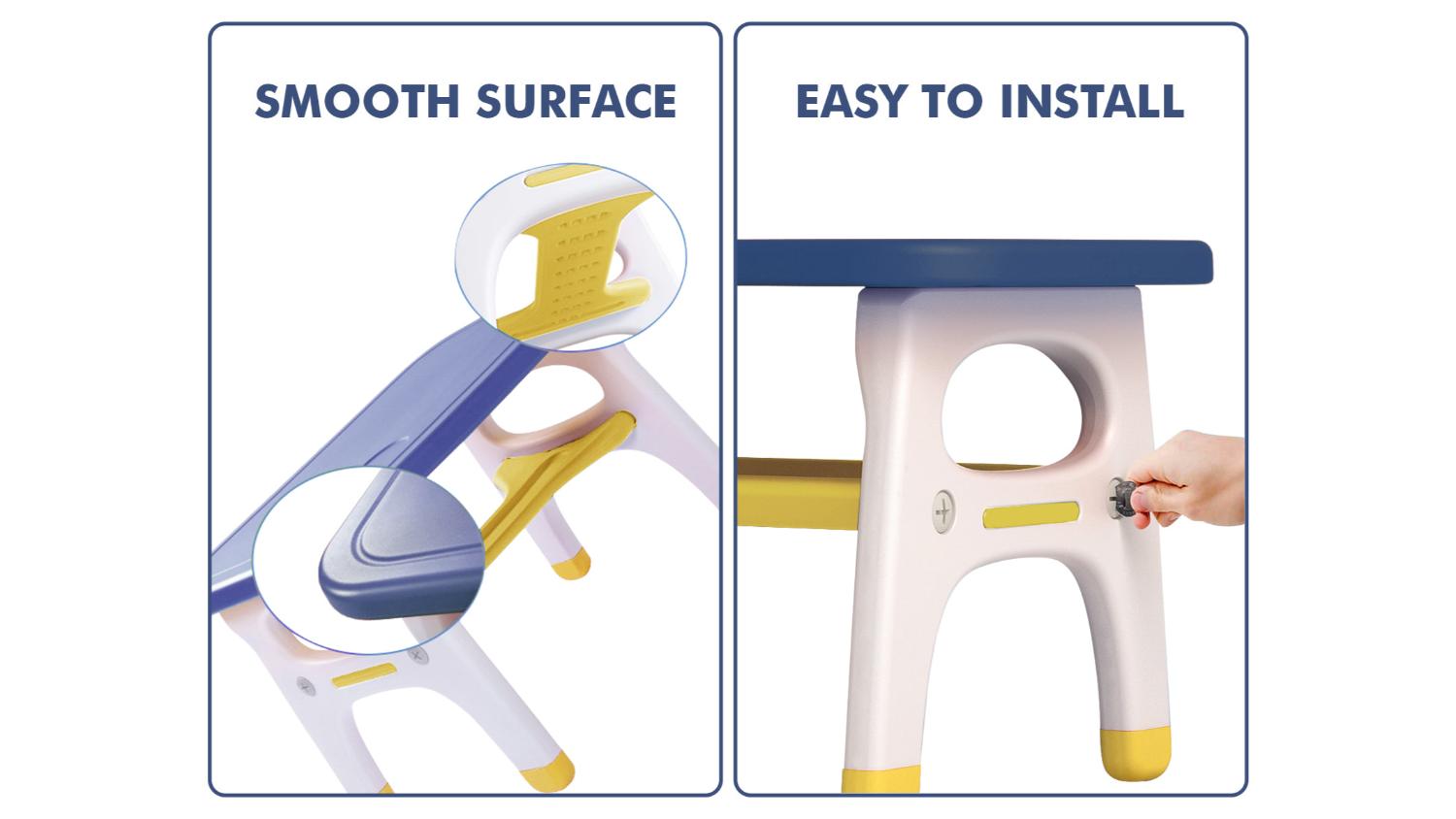 Elevate your little one’s playtime experience and create a colourful world of imagination with the TSB Living Children's Desk and Chair Set! Crafted from durable HDPE plastic, this set is designed to withstand the boundless energy of your kids while being a breeze to maintain. The ergonomic design of the legs ensures stability, supporting up to 50kg with ease. Plus, it boasts round and smooth edges, upgraded protected rubber corners, and non-toxic paint finishes, creating a child-safe haven for endless adventures.