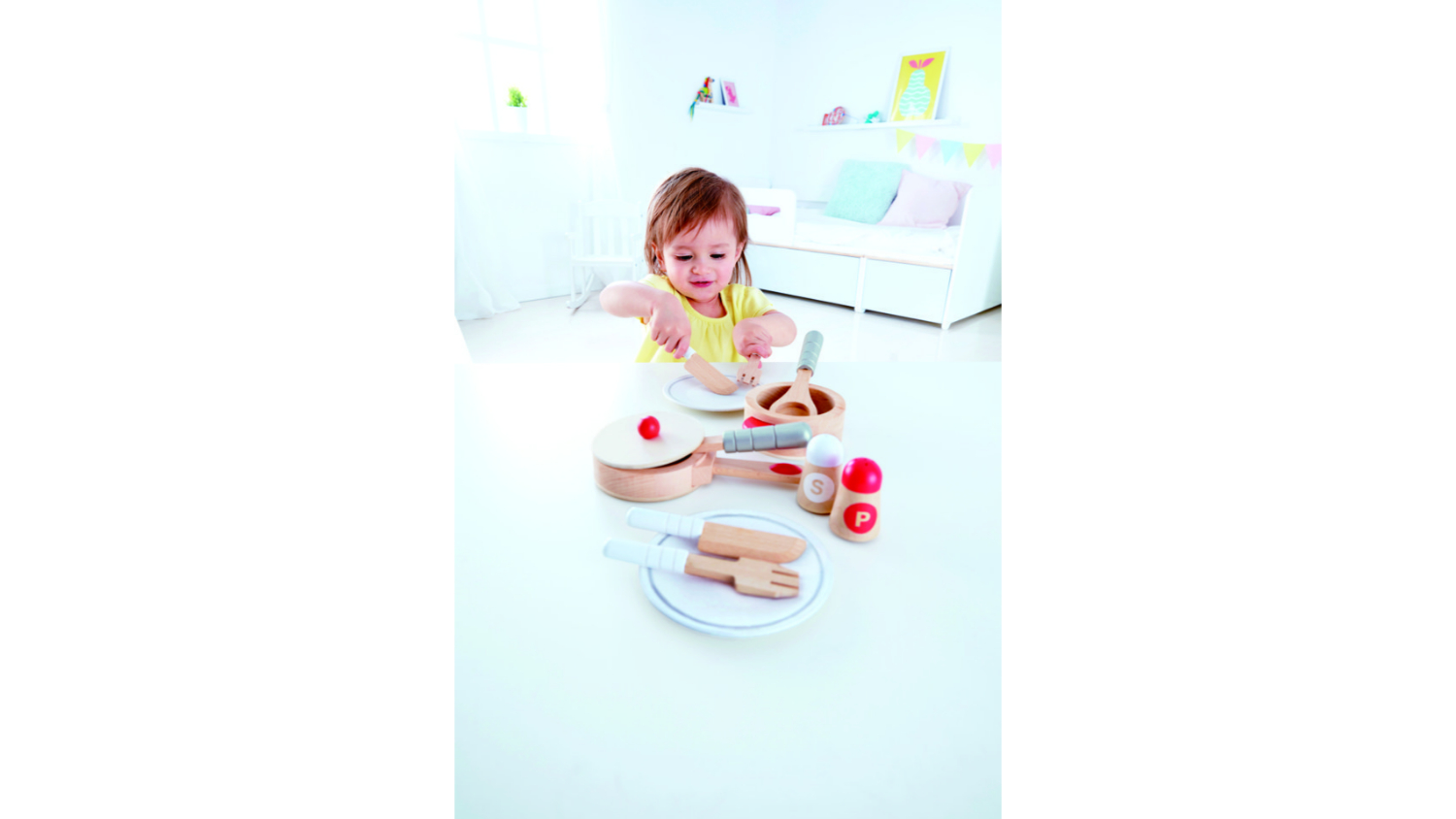 A must-have for aspiring young chefs, the Hape Cook & Serve Wooden Play Serveware helps cultivate your child's passion for culinary arts. Complete with wooden pots, pans, plates, and accessories, this set provides everything needed for imaginative cooking and serving fun.