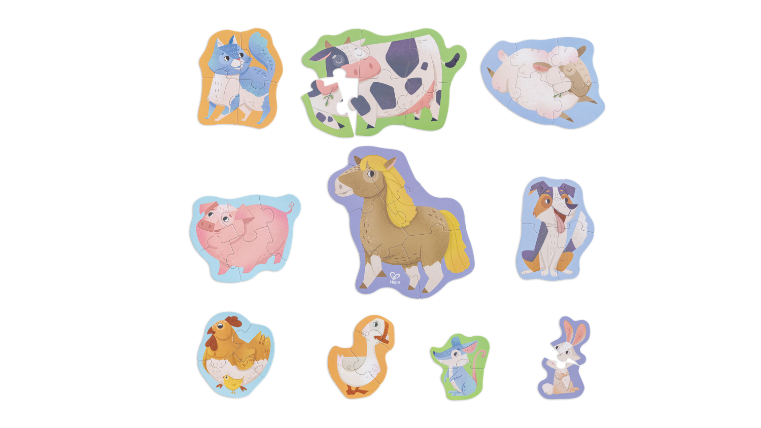 Engage in hours of educational and entertaining playtime with Hape Farmyard Friends Puzzle 20pcs. This bundle features ten farmyard animal jigsaw puzzles in the shape of a pig, chicken, cat, duck, sheep, mouse, cow, rabbit, goat, and horse. As your little maestro completes the puzzles, you can ask them to identify the animals and their sounds. It will also help to improve their hand-eye coordination, vocabulary, recognition, and problem-solving skills.