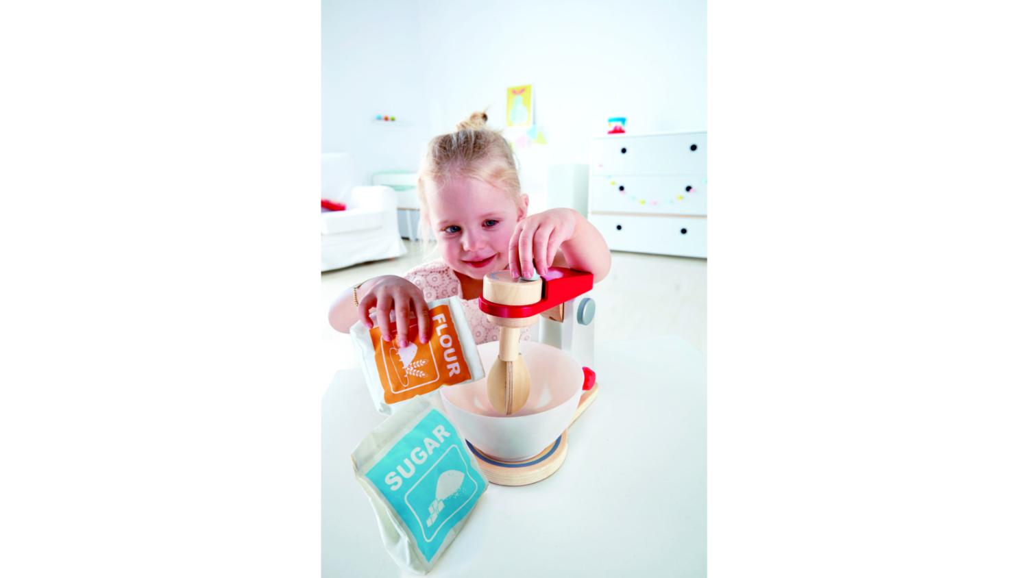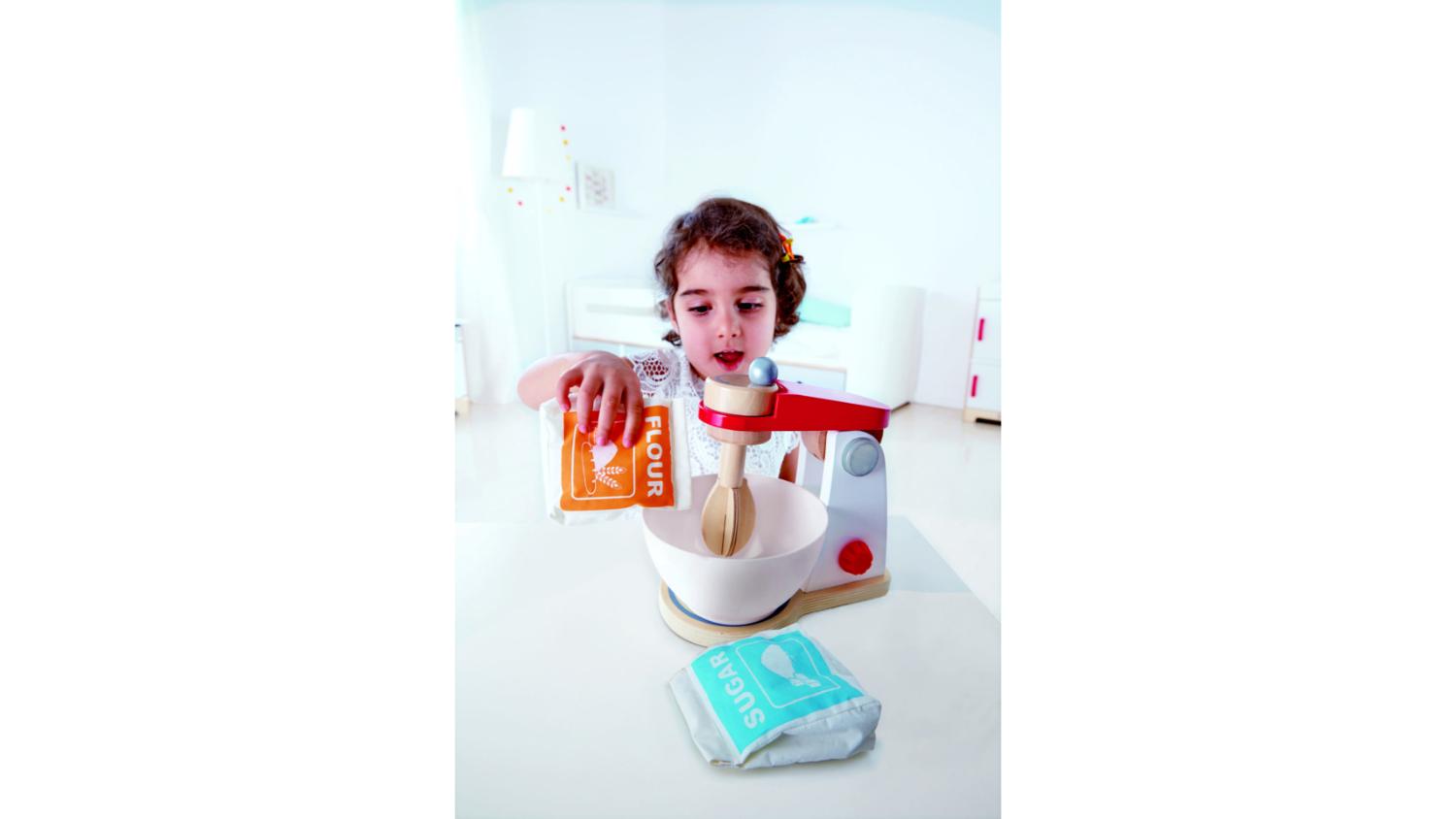 Let your little baker create imaginary treats with the Hape Mix 'n' Bake Toy Food Processor! This adorable wooden mixer features spinning beaters and a removable bowl, letting your aspiring chef pretend to whip up everything from cakes to cookies. It's a great way to encourage creativity, bonding time, and maybe even inspire a love of baking. Made with safe, sustainable materials, this mixer is built to last for years of delicious playtime fun.