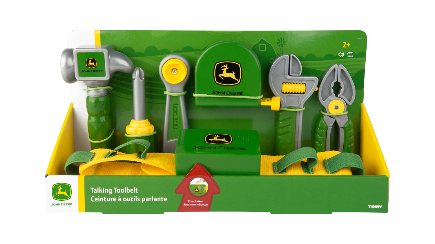 Make pretend play more engaging for your child with the John Deere Toy Talking Tool Belt! A wonderful companion for your little tinkerer, this toy features an adjustable belt with a talk function. It also equips six handy tools, most of which can move and adjust like real ones. For added convenience, this toy also includes three AAA batteries.