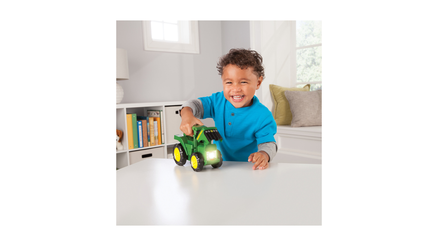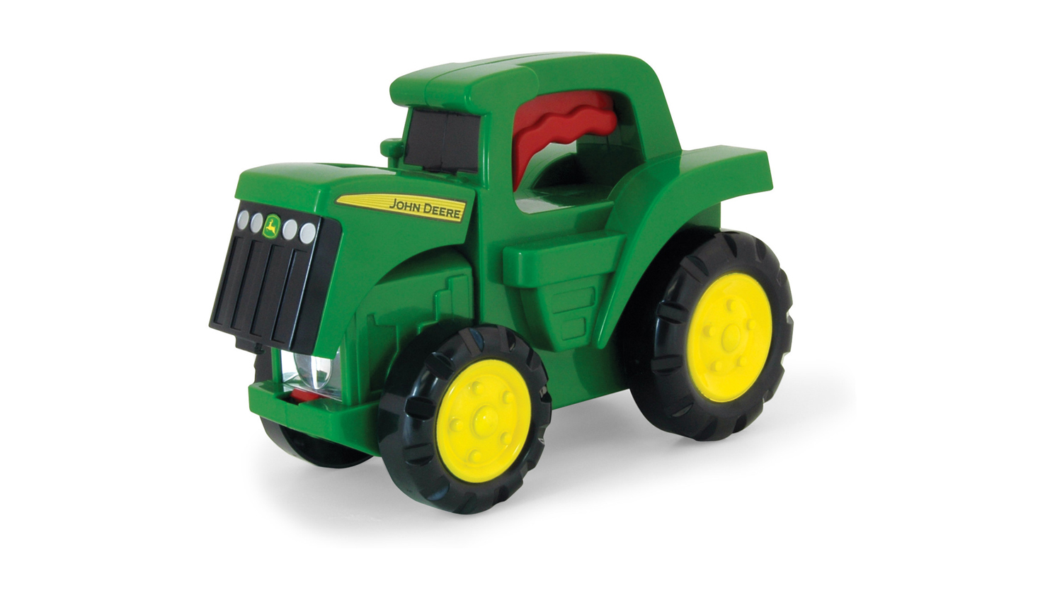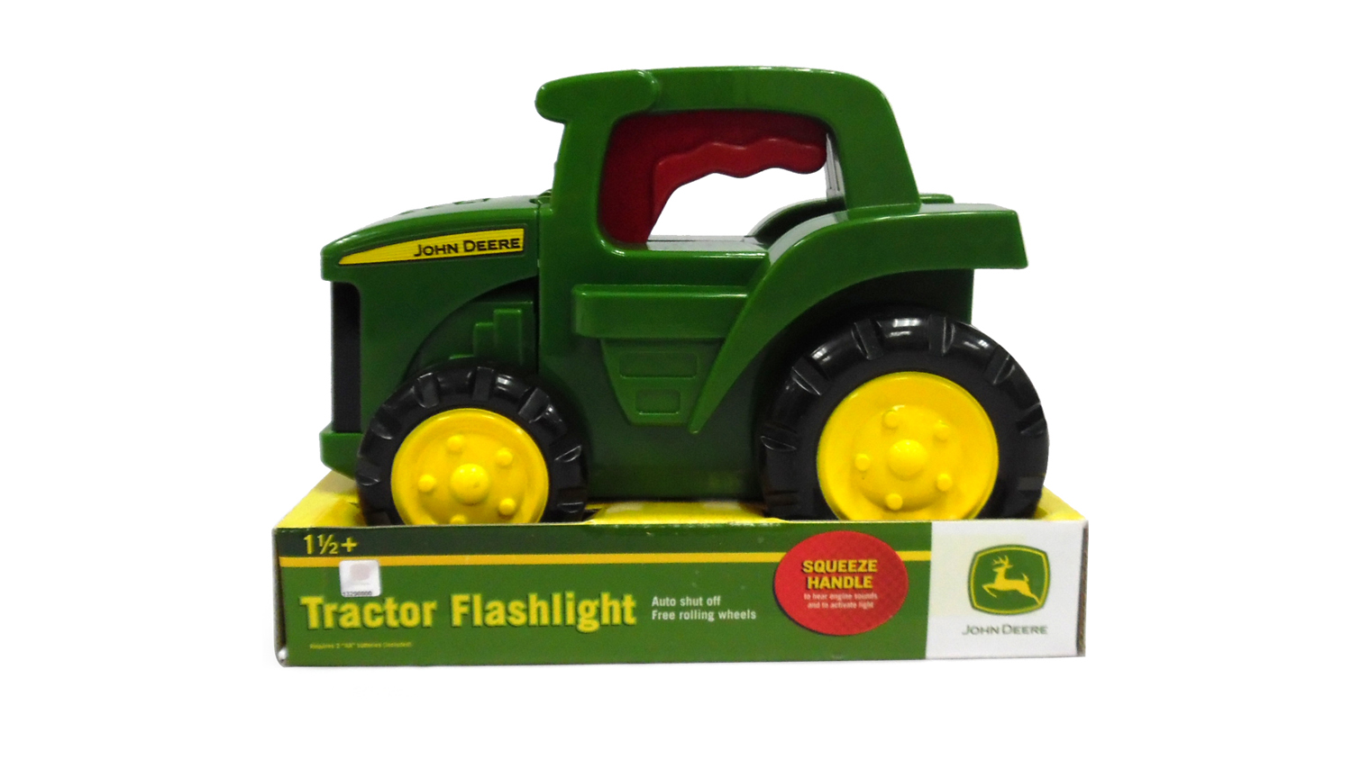 Get on track and light up the way with the John Deere Tractor Flashlight! This tractor-shaped torch keeps playtime more fun for your little ones. It has an auto shut-off feature and free-rolling wheels. You can also squeeze the trigger to hear realistic engine sounds and inspire pretend play.