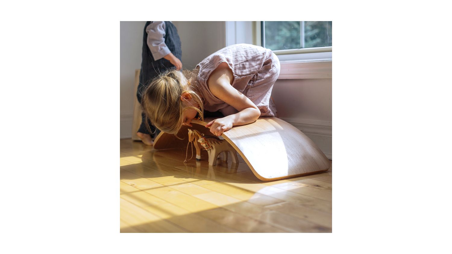 Have fun balancing and explore many ways to play with the Kinderfeets Kinderboard. This versatile wooden board can support up to 220kgs, offering open-ended play for toddlers, young children, teens, and kids at heart. It helps hone balance skills, coordination, body awareness, and mobility while sparking the imagination. Kinderboard can also be used as a seesaw, balancing toy, slide, stepping stool, boat, resting nook, and so much more. The possibilities are endless!