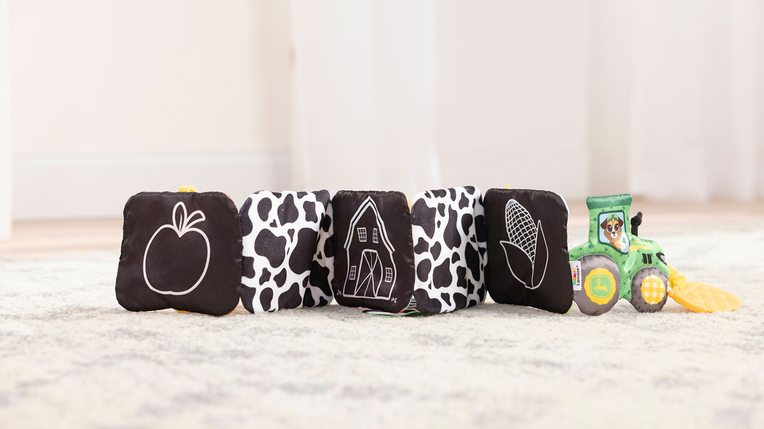 Start your baby’s field of adventure with John Deere’s Baby Soft Book, Farm-To-Table Journey! This colourful, interactive book features crinkle corn husks and playful textures to engage your baby’s senses. Designed for small hands, it’s perfect for kids 6 months and older. Get your little farmer ready to plant out some fun!