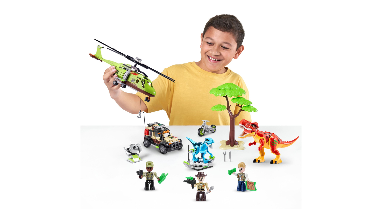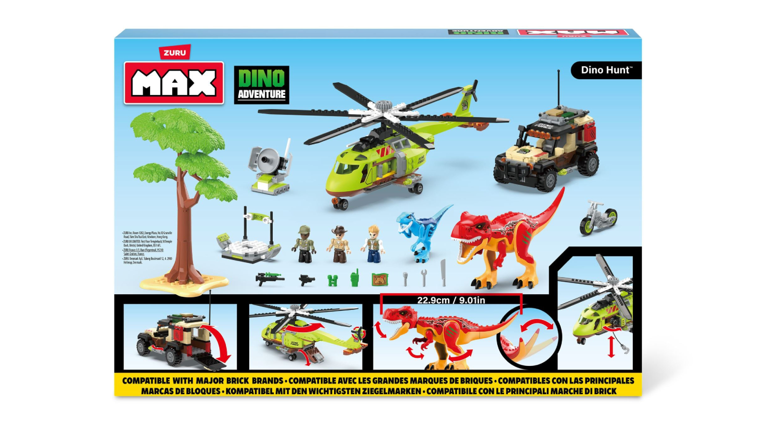 Get ready for a thrilling chase with the Zuru MAX Dino Adventure Building Block Set. This massive collection contains 592 pieces, letting you build an exciting prehistoric world. It also includes a helicopter and a truck that unfold to store the dinosaur, plus, you can release the motorcycle for a high-speed chase. The blocks are compatible with all major brick brands, and you can even activate the dinosaur arms for defence—no batteries required for this action-packed build!