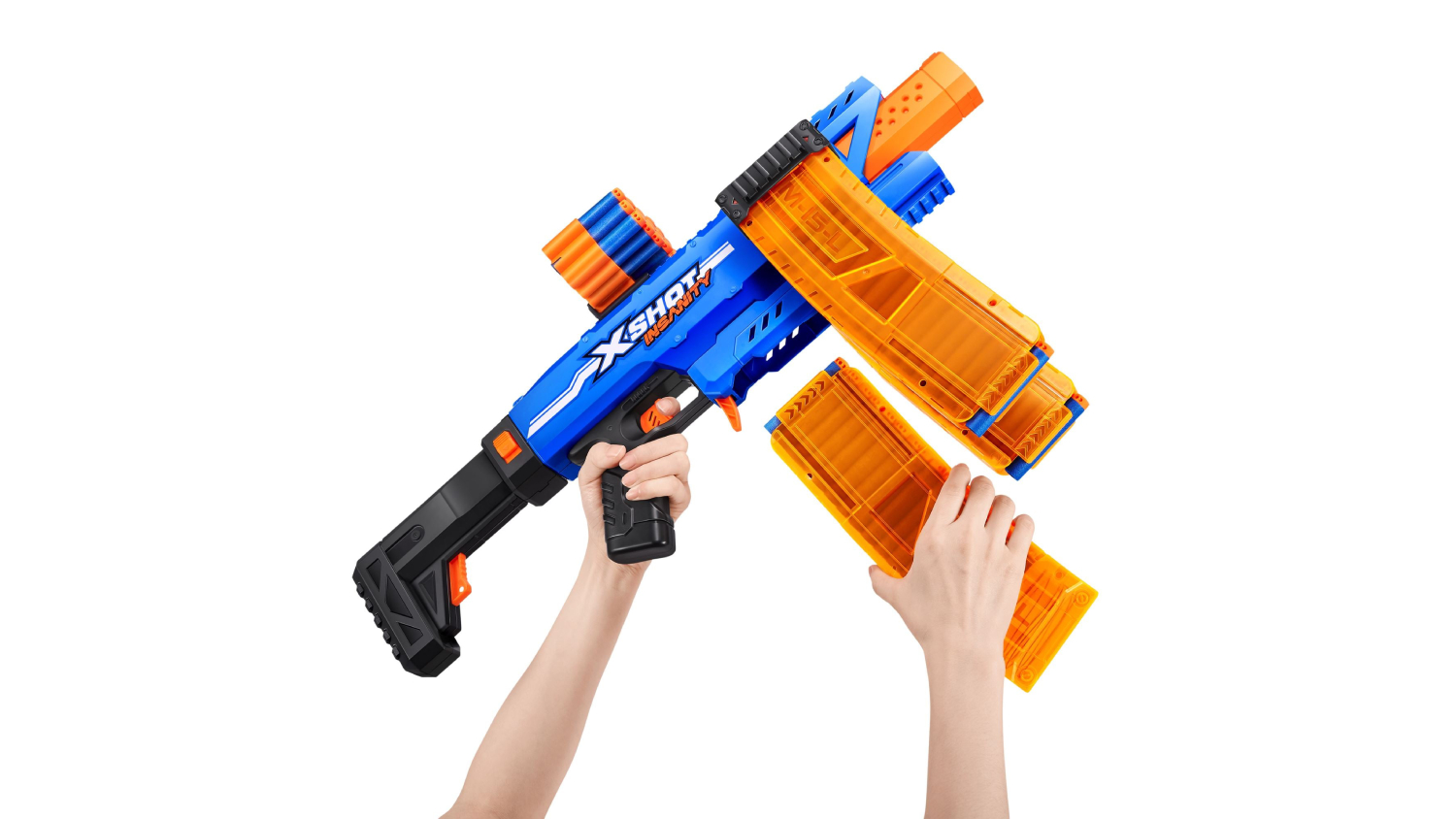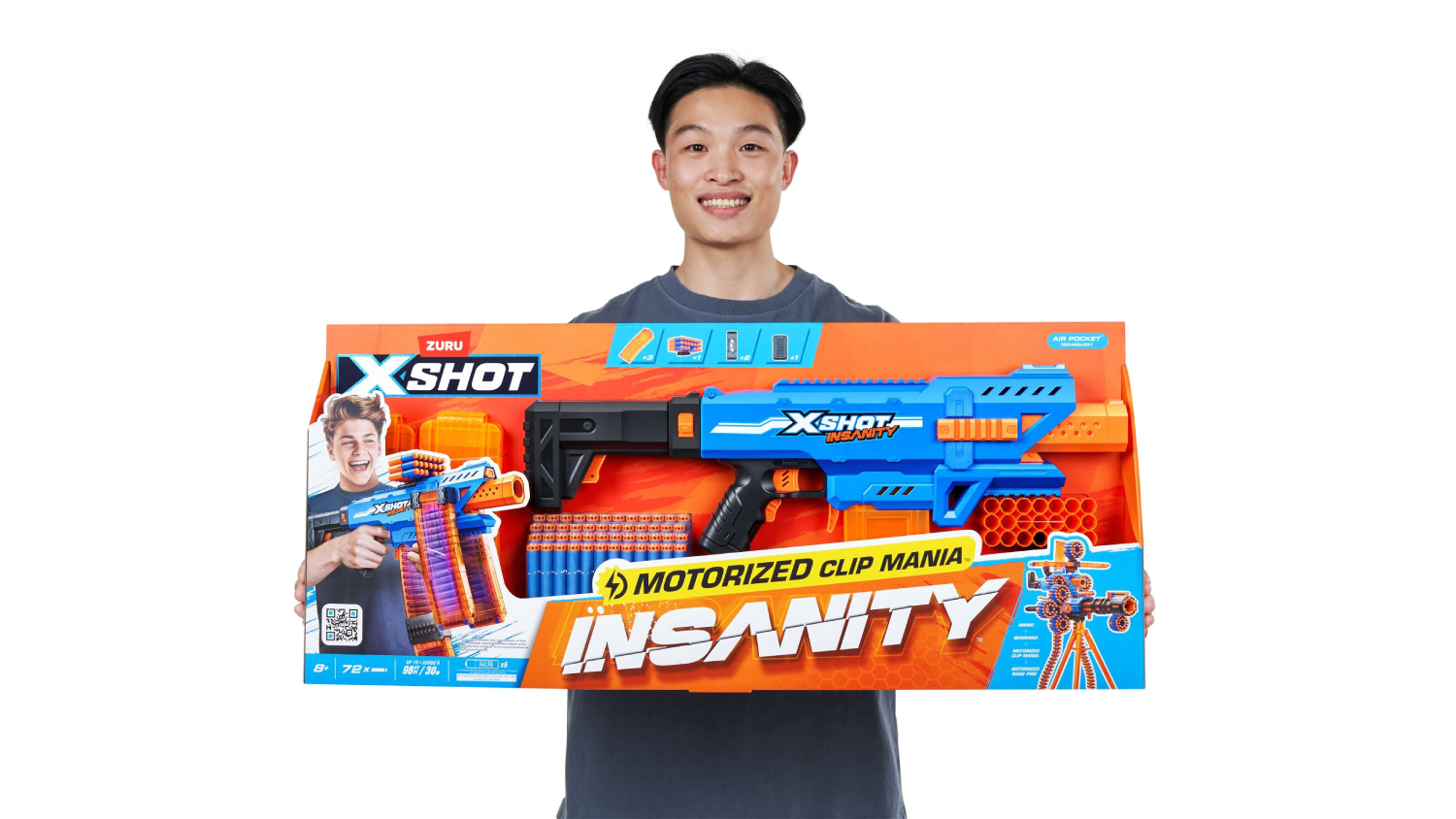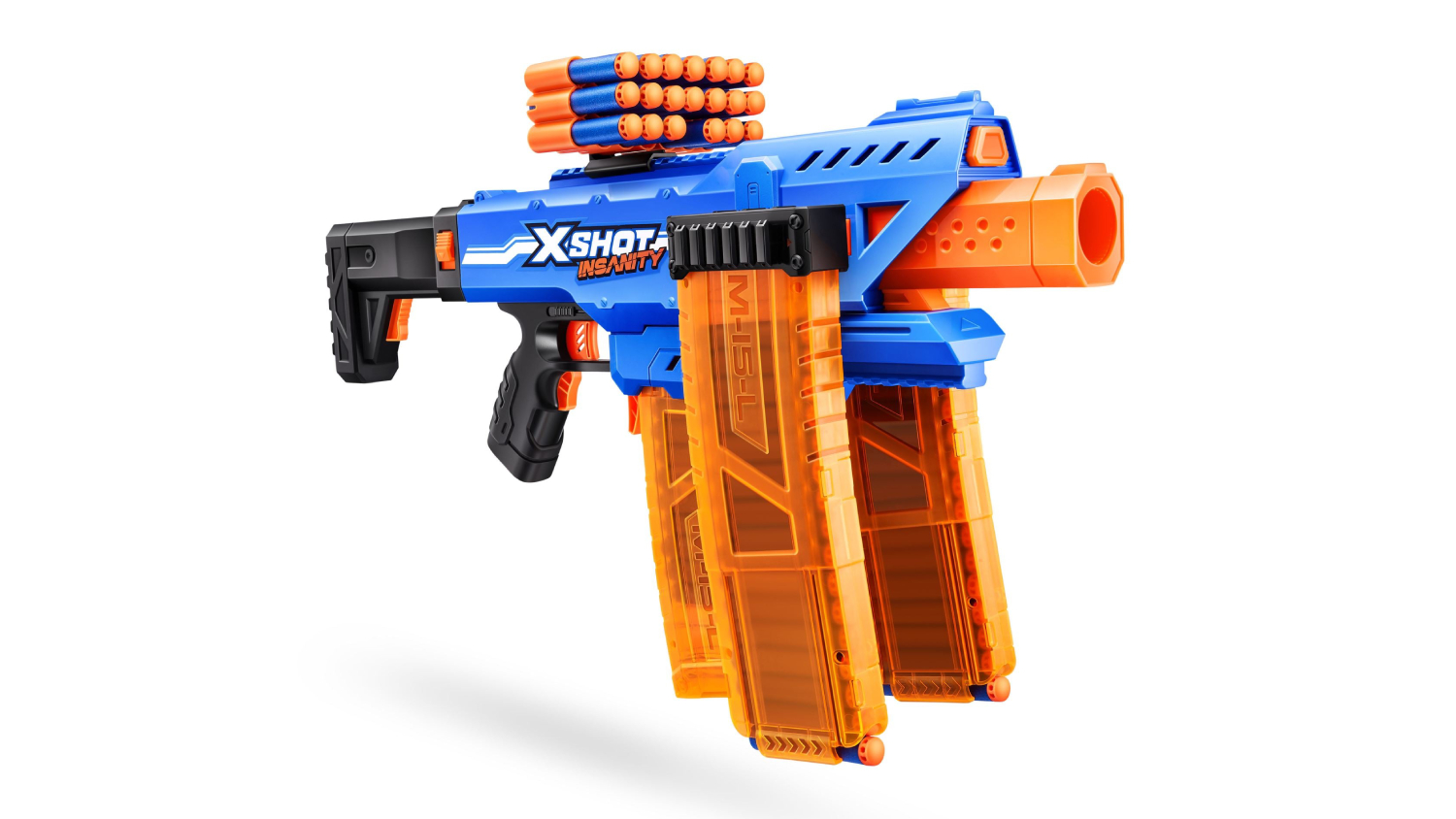 Meet the Zuru X-Shot Insanity Motorised Clip Mania Dart Gun—your ticket to rapid-fire domination! This motorised blaster packs 4 clips and extenders, so you can keep firing without missing a beat. Launch darts up to 90 feet away and customise your setup with insane accessories. Combine it with other X-Shot Insanity blasters for the ultimate battle rig.