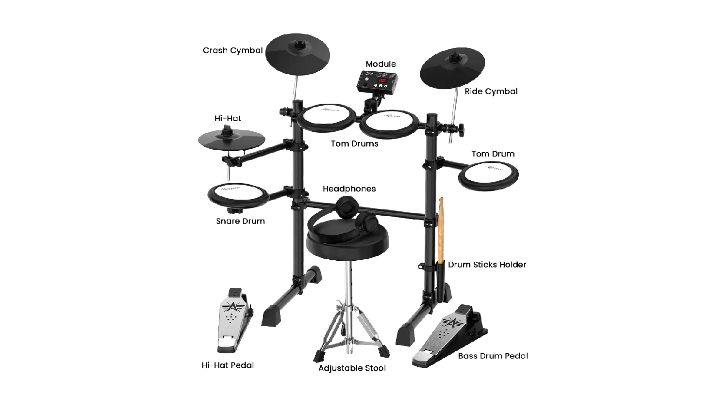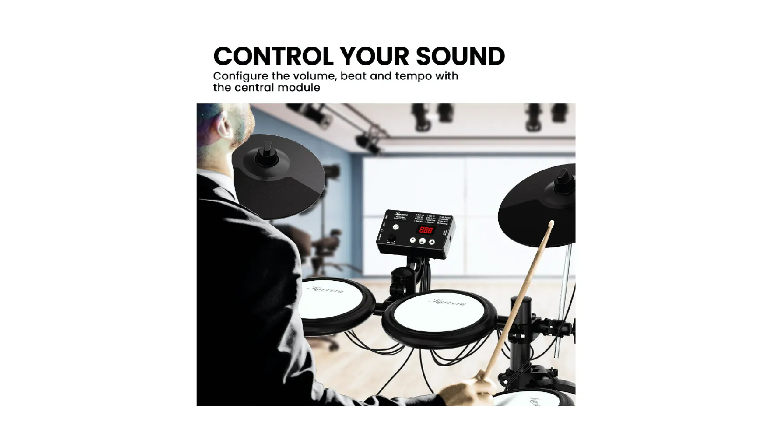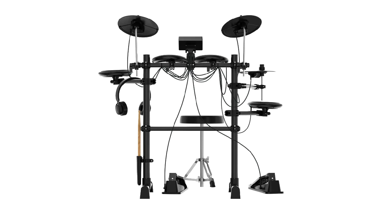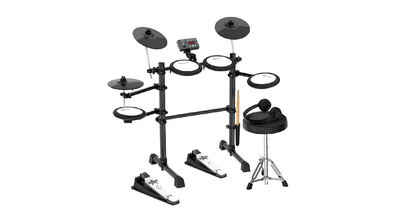 This Karrera TDX-16 Electronic Drum Kit w/ Pedals combines innovation, craftsmanship, and advanced features, it also includes 3 cymbals, Hi-hat and bass pedals, a virtual kick drum with pedal for realistic practice, LCD screen, USB MIDI connection, 3.5mm audio cable & amplifier output, and more. This Electronic Drum Kit will empower drummers of all levels to reach their full potential.