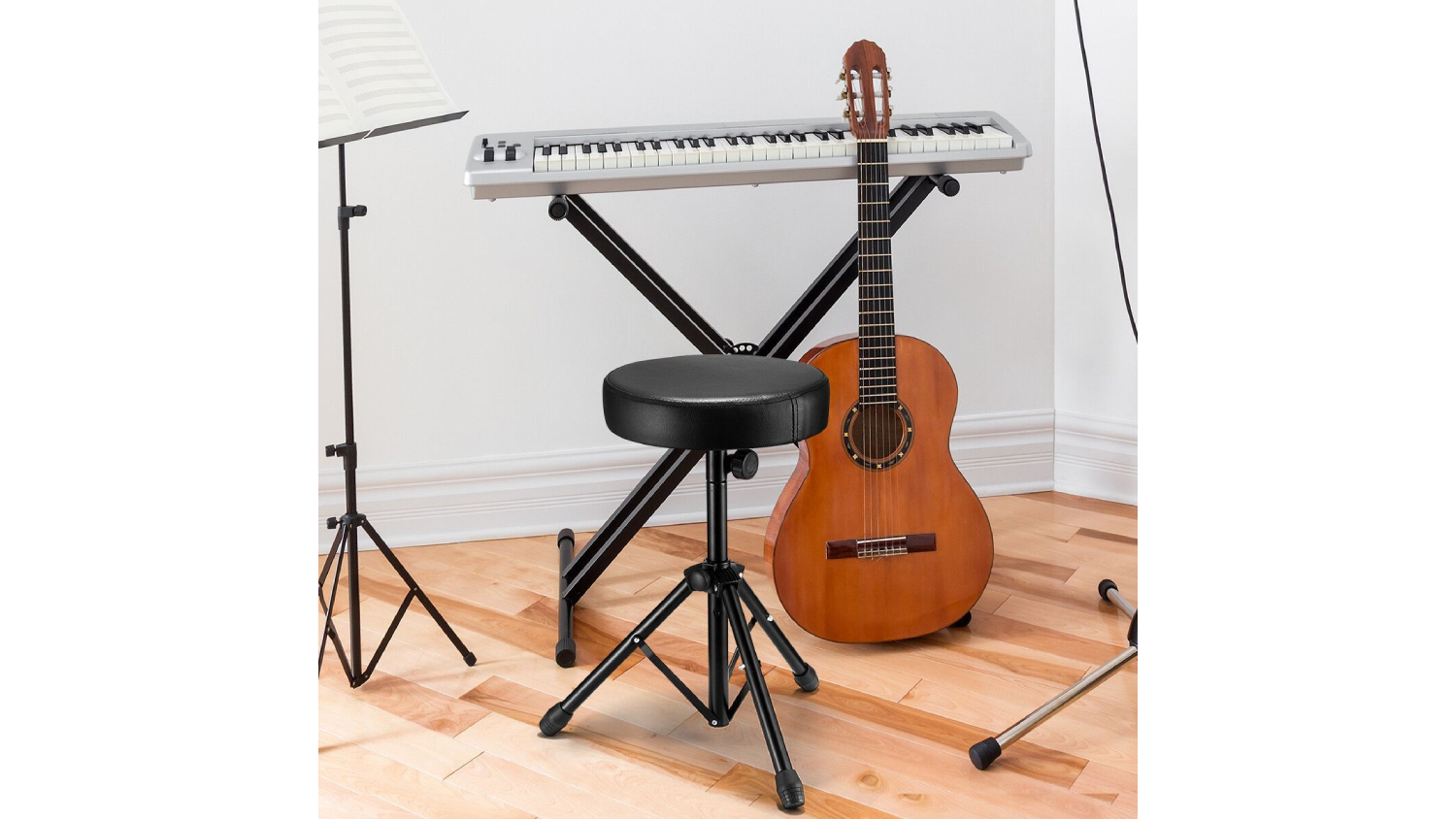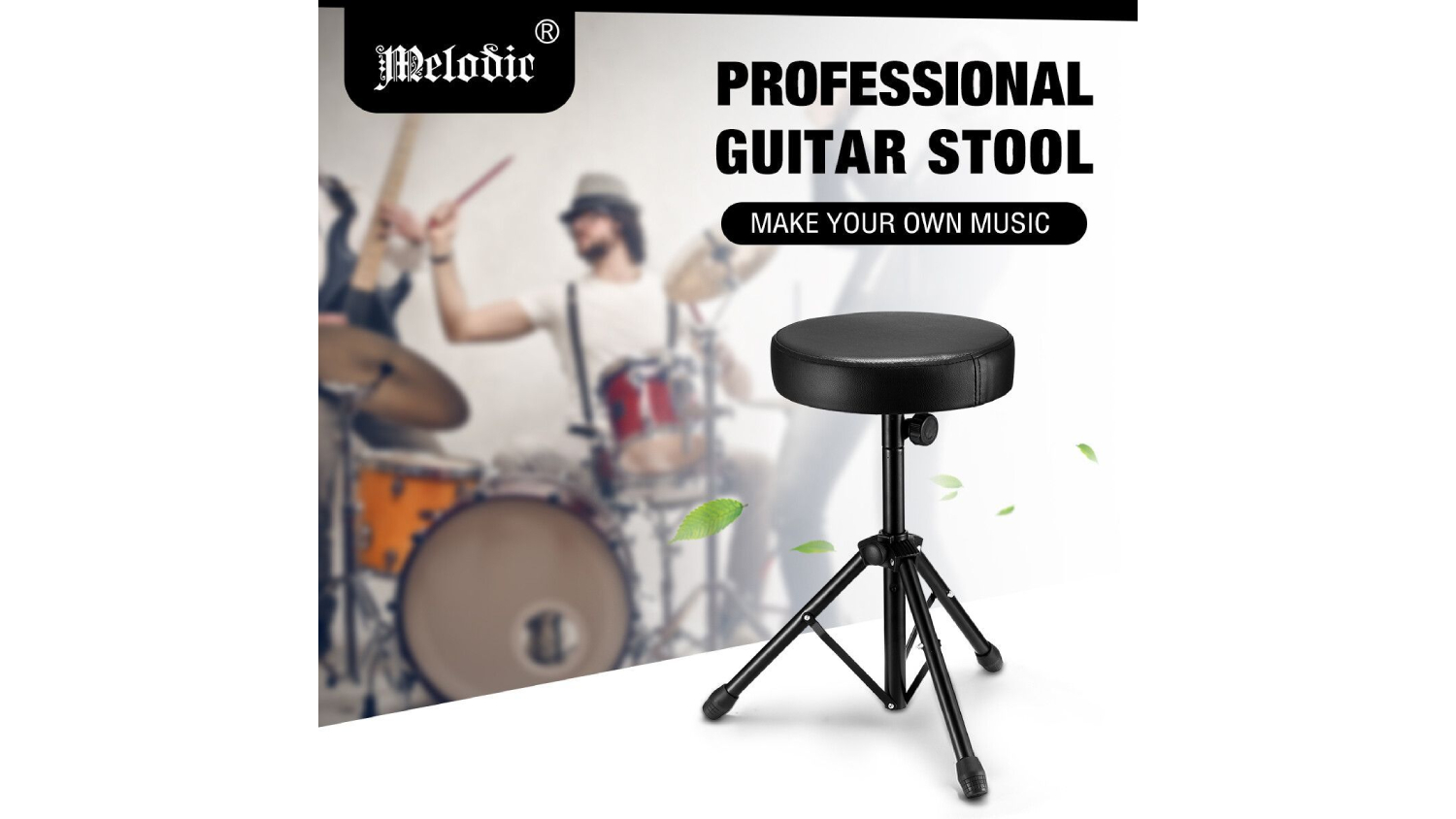 The Melodic Folding Spinning Drum Stool is designed to boost your comfort and performance, featuring a rotatable padded seat at a 50cm height, a durable metal frame supporting up to 250lbs, and anti‑skid rubber feet for steady play. It’s foldable, sturdy, and perfect for drums, keyboards, or guitar.