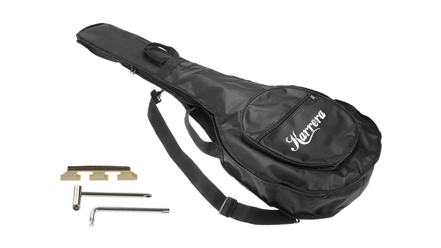Discover the joy of playing blues and country music using the Karrera 6 String Resonator Banjo! Boasting a durable construction, premium-quality sounds, and a 6-string resonator, this instrument is suitable for both beginners and professionals alike. Additionally, its high-gloss finish creates a flair-like effect while you play.