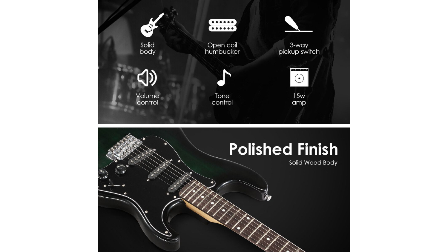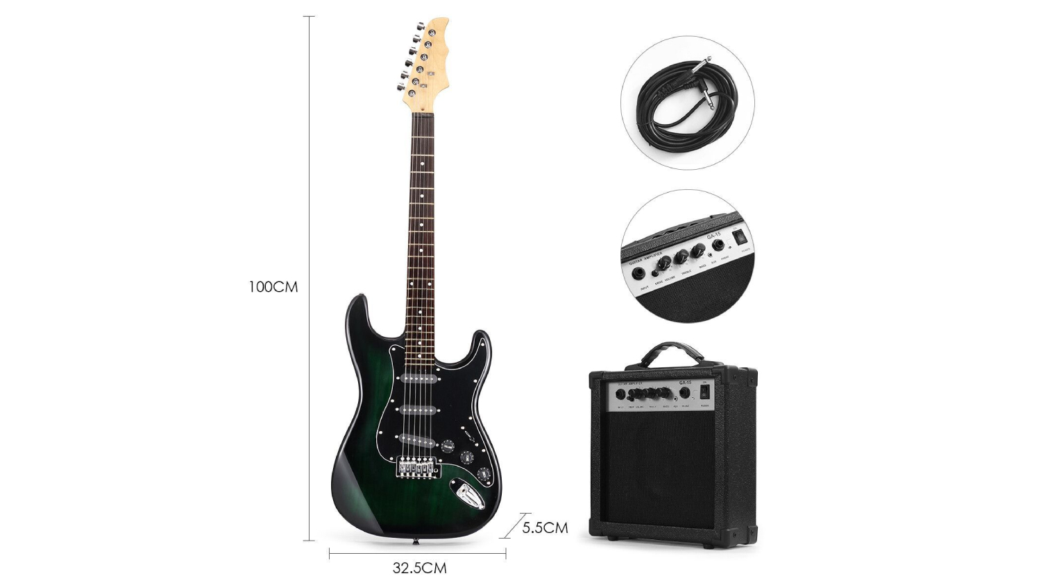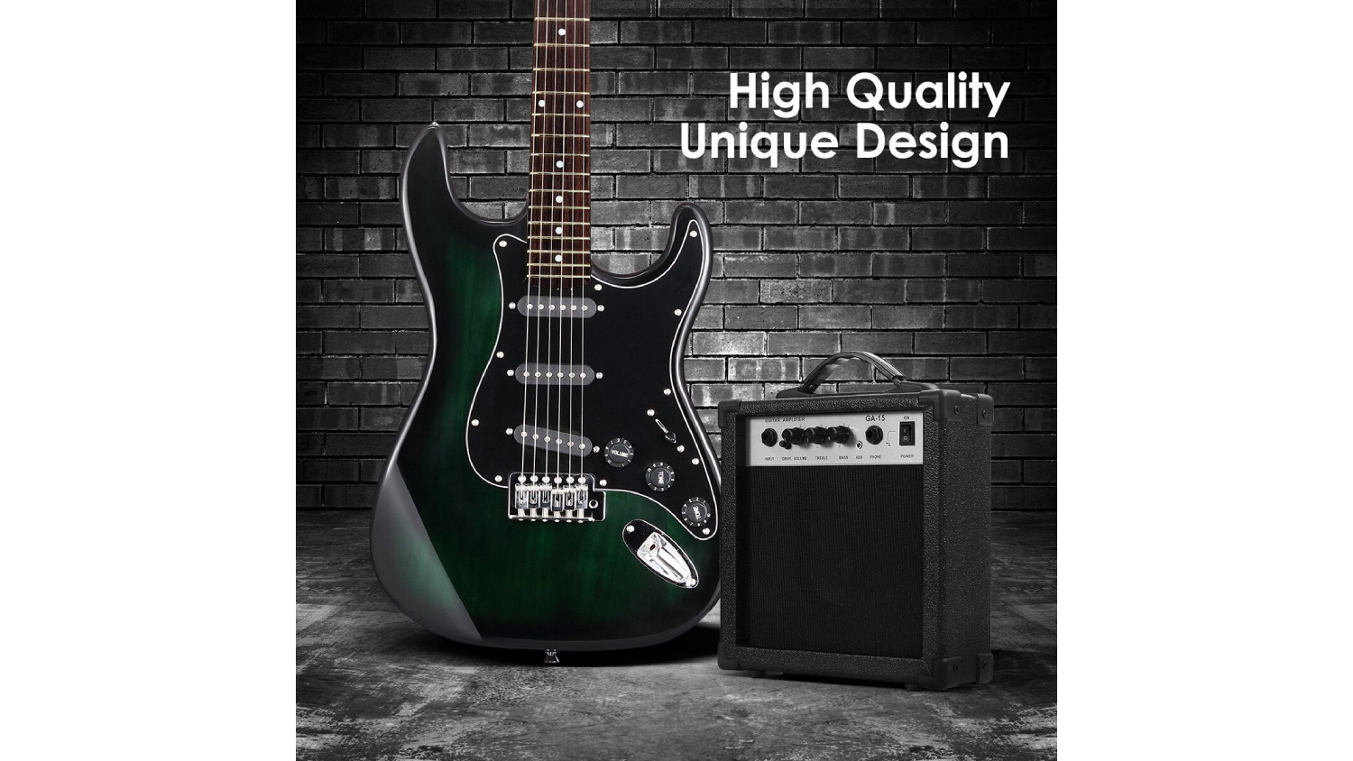 The Melodic 39” Electric Guitar in Green is your perfect companion for learning, performing, and falling in love with music. Built with quality materials like a polar wood body, maple neck, and strong steel strings, this instrument offers smooth playability and impressive sound. Complete with a 15W amp and must-have accessories, this affordable guitar set is ideal for beginners and progressing players ready to shine on stage or at home.