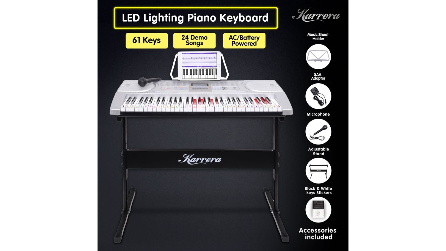 Karrera 61 Keys LED Electronic Keyboard with Stand - Silver