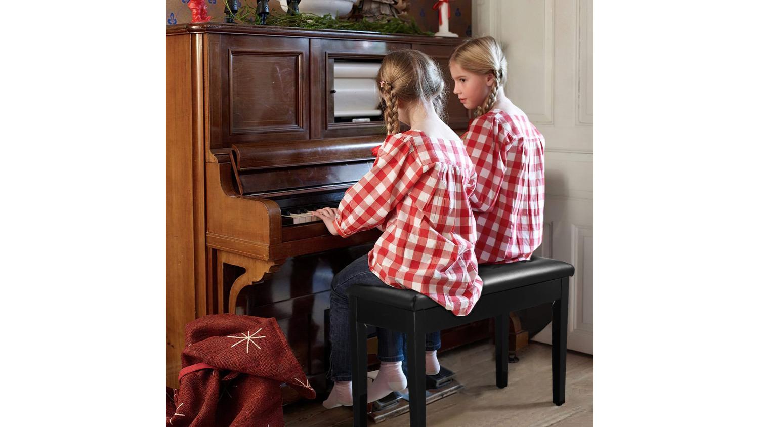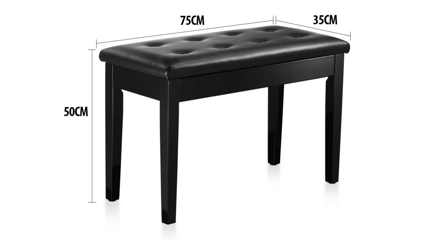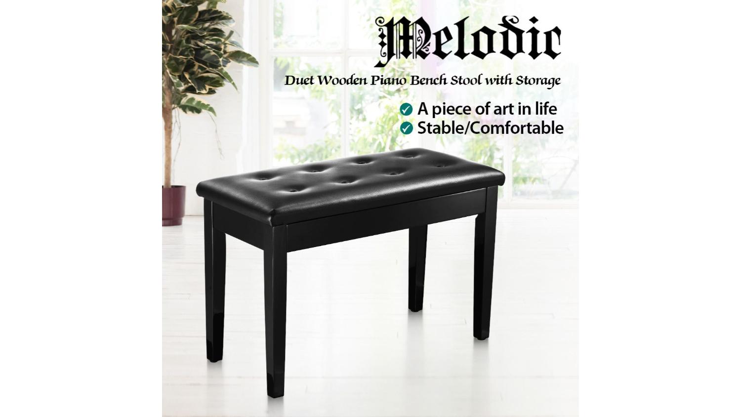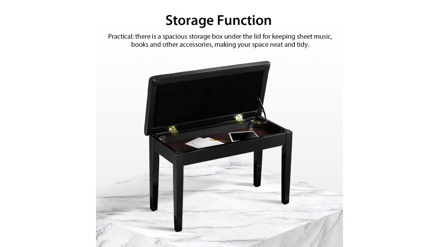 Melodic Piano Bench Stool with Storage 75 x 35 x 50cm - Black