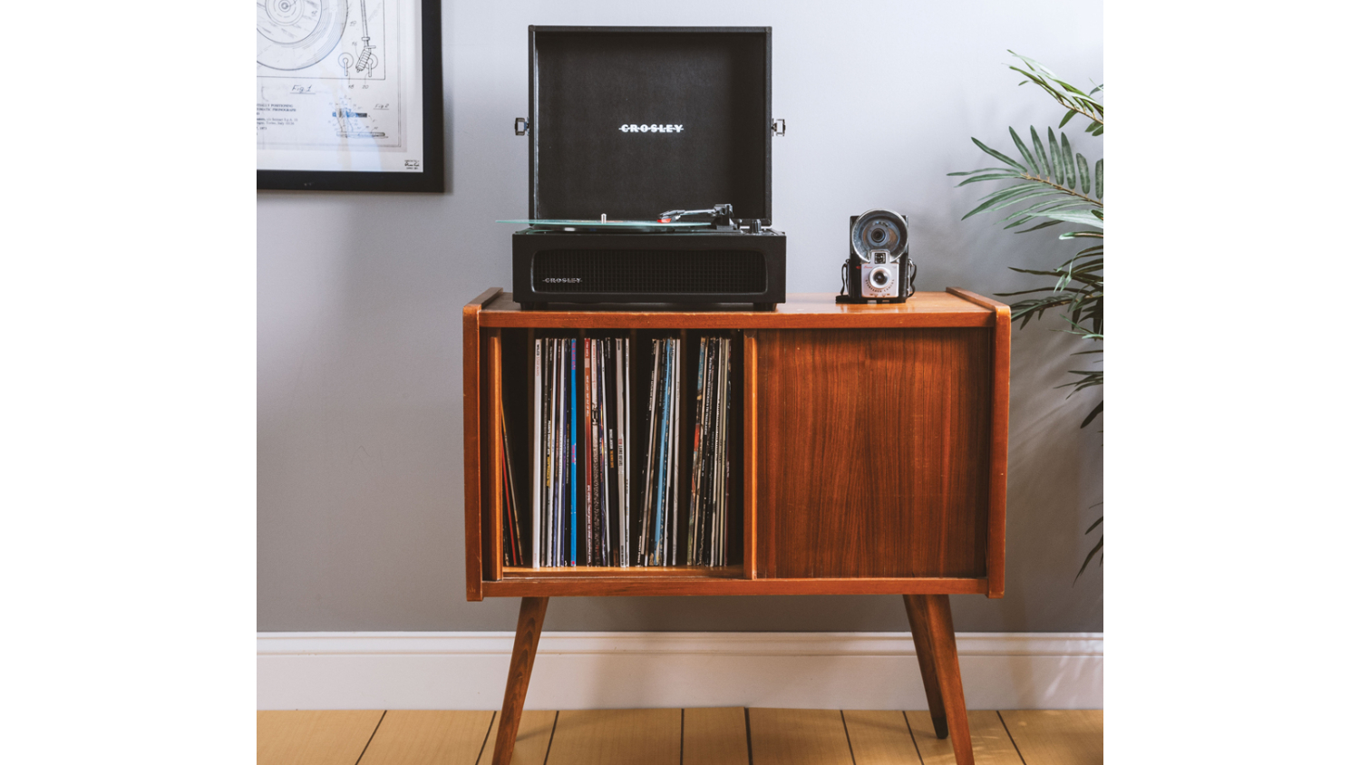 Discover timeless sound and stylish storage with the Crosley Voyager Bluetooth Turntable with Gadhouse Vinyl Rack! The vintage-inspired turntable lets you spin records or stream wirelessly via Bluetooth, with RCA outputs for a richer sound. Adjust pitch for perfect playback, then effortlessly choose your next tune from the solid wood Gadhouse rack, designed to hold 20-30 7” or 12” records for easy access and a clutter-free look.