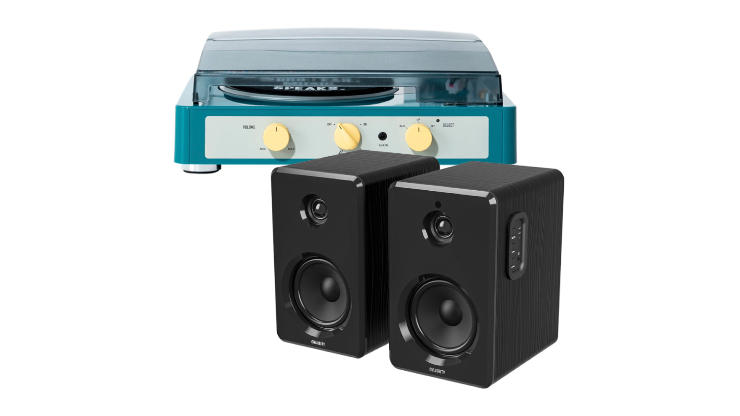 Enjoy the warmth and richness of vinyl records with Gadhouse Brad Retro Mk.II Bluetooth Turntable with Majority D40 Bluetooth Speakers! With seamless playback of all your cherished records, from 7” to 12”, and a 3-speed turntable with pitch control, enjoying your vinyl collection has never been smoother. You can also enjoy crystal-clear audio for movies, music, and more with the bundled Majority D40 Speakers, featuring Bluetooth, USB, and AUX-in. Experience your favourite tunes in a whole new way, as the Brad Retro MKII elevates your listening experience!
