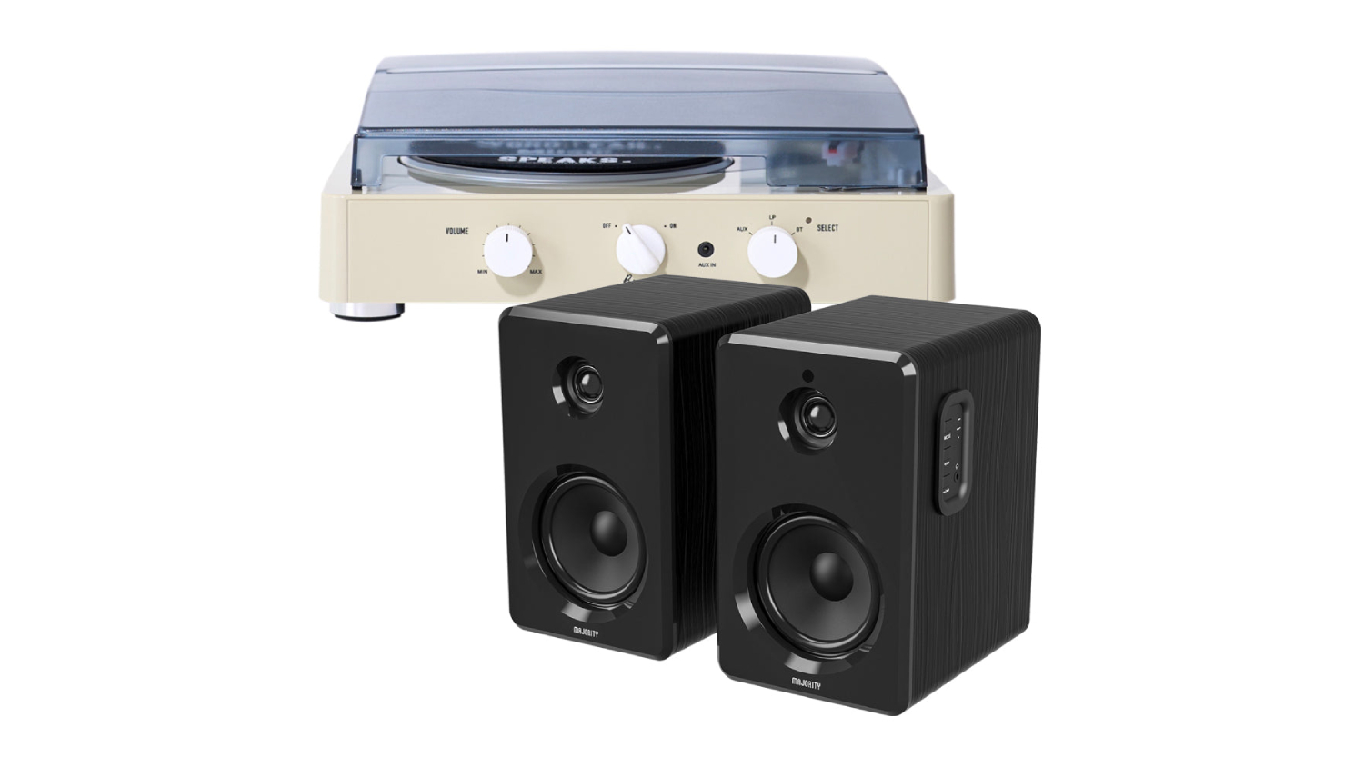 Experience high-quality audio and style with this vintage-inspired Gadhouse Brad Retro Mk.II Bluetooth Turntable with Majority D40 Bluetooth Speakers! With seamless playback of all your cherished records, from 7” to 12”, and a 3-speed turntable with pitch control, enjoying your vinyl collection has never been smoother. Plus, the dual 10W dynamic speakers deliver a richer and louder sound than ever before. You can also embrace modern convenience by streaming your music wirelessly via the enhanced Bluetooth V5.3 connection.