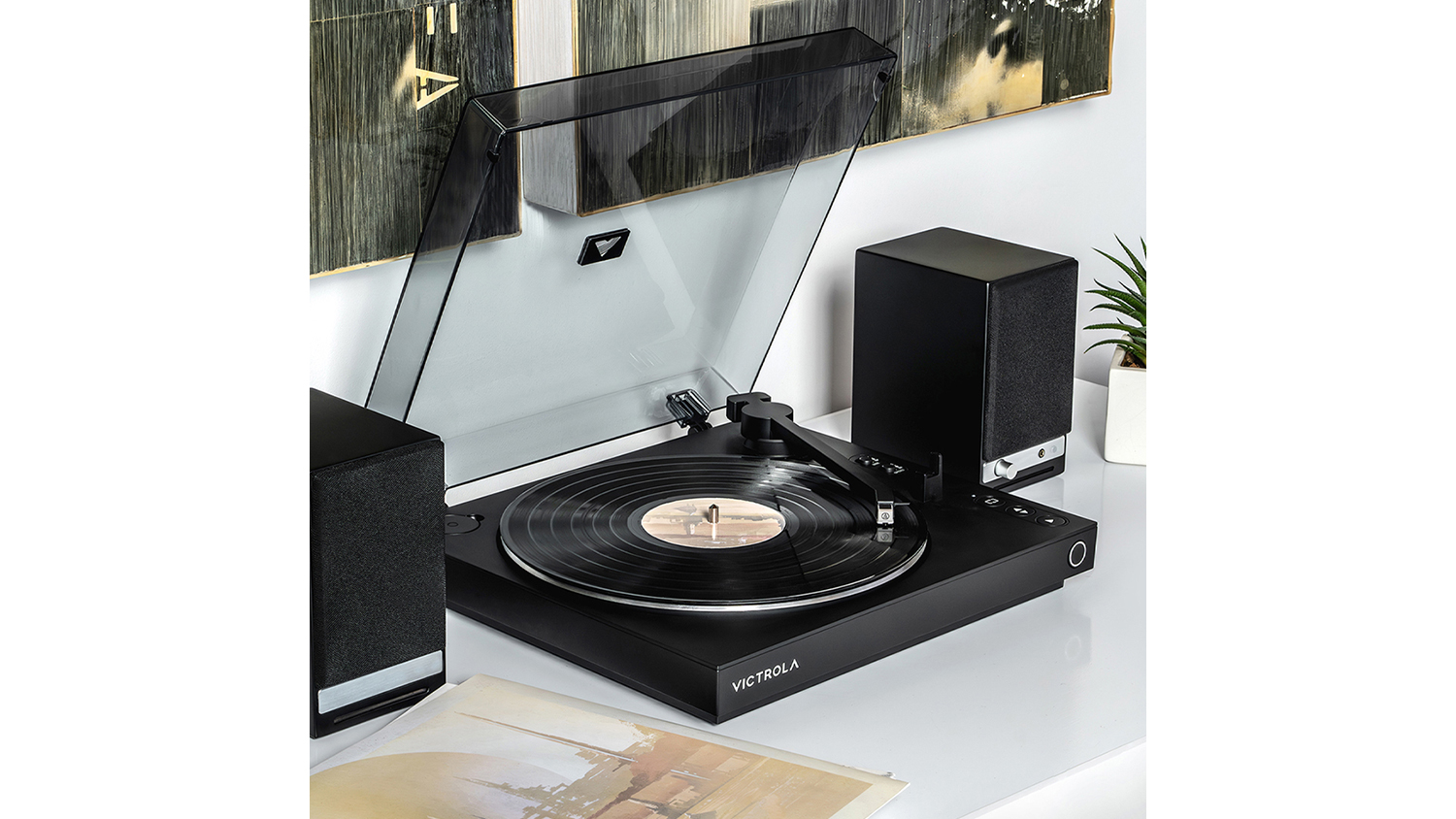 Enjoy the rich, warm sound with the Victrola Automatic Bluetooth Turntable. This automatic turntable is equipped with a quality Audio-Technica cartridge and features wireless Bluetooth streaming and wired RCA connections. It also offers one-touch playback. Simply place your record on the platter, hit play, and let the machine handle the rest.