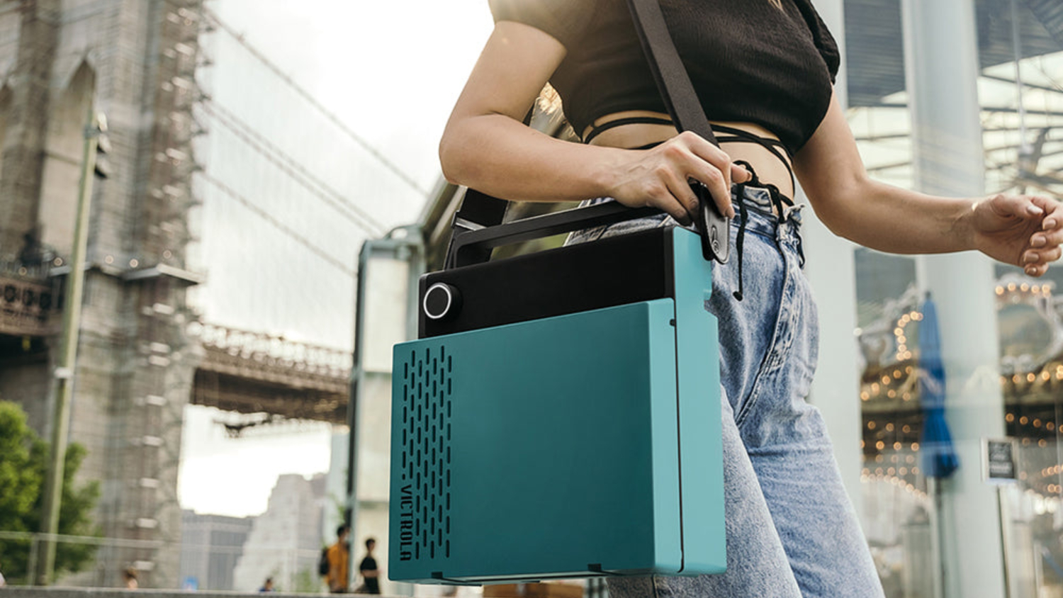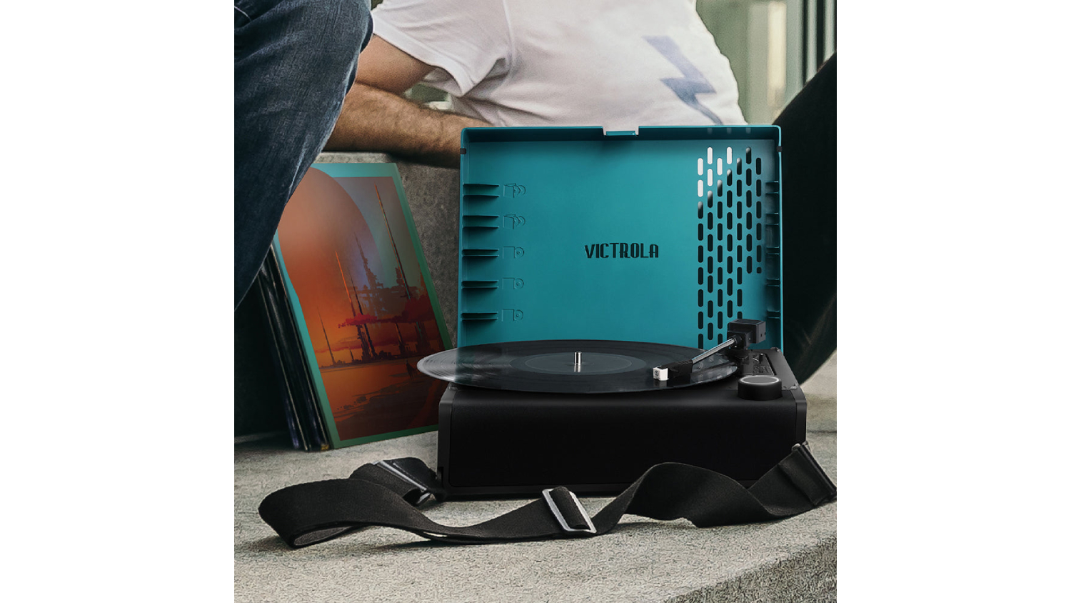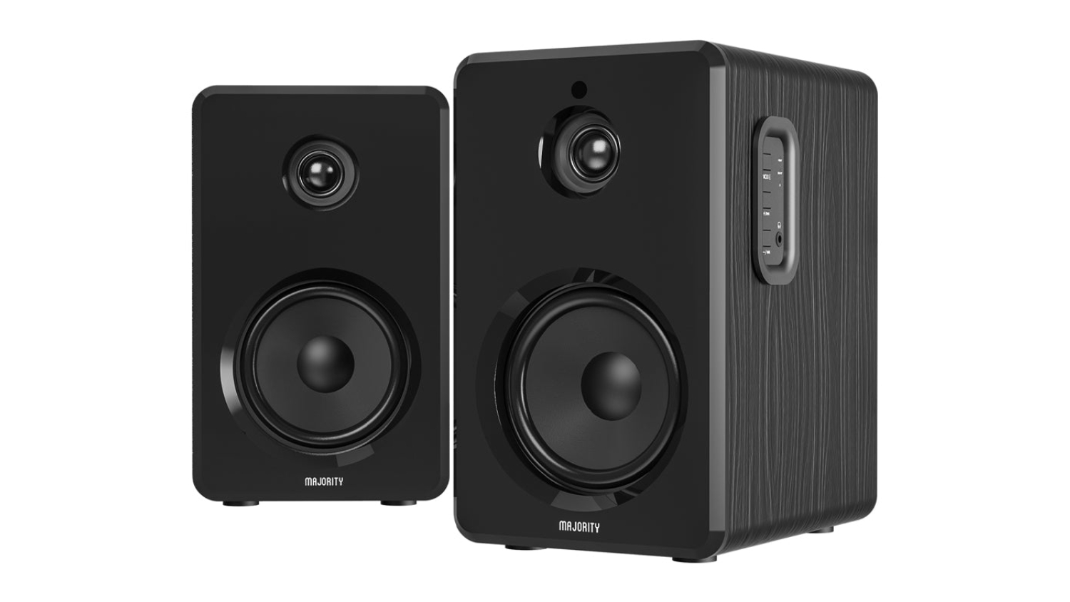 Play your favourite vinyl records on demand with the Victrola Revolution GO Portable Turntable Blue and Majority D40 Bluetooth Speakers Bundle! Built with a 3-speed belt-driven turntable and an Audio Technica moving magnetic cartridge, this unit delivers superior sound quality. It also boasts a battery-powered design, so you can enjoy your collection wherever you go. You can also enjoy crystal-clear audio for movies, music, and more with the bundled Majority D40 Speakers, featuring Bluetooth, USB, and AUX-in.