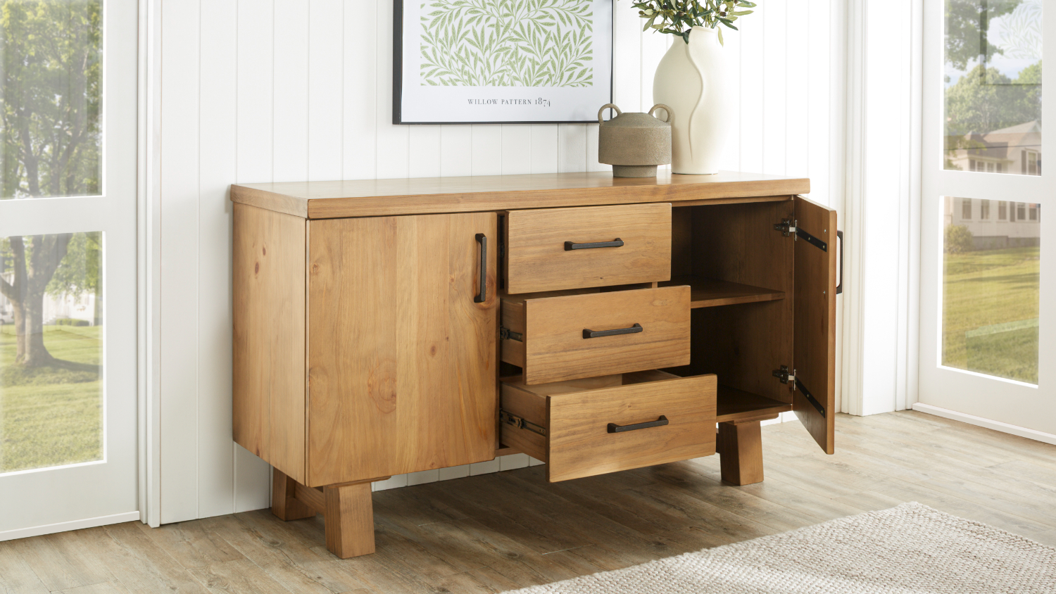 Stylish and Practical: Delivering a seamless fusion of classic style and modern utility, the Barclay 1520mm Buffet Table lets you keep your dining area organised and clutter-free. It also makes a perfect stage for hosting delightful dinners or showcasing your precious decor.