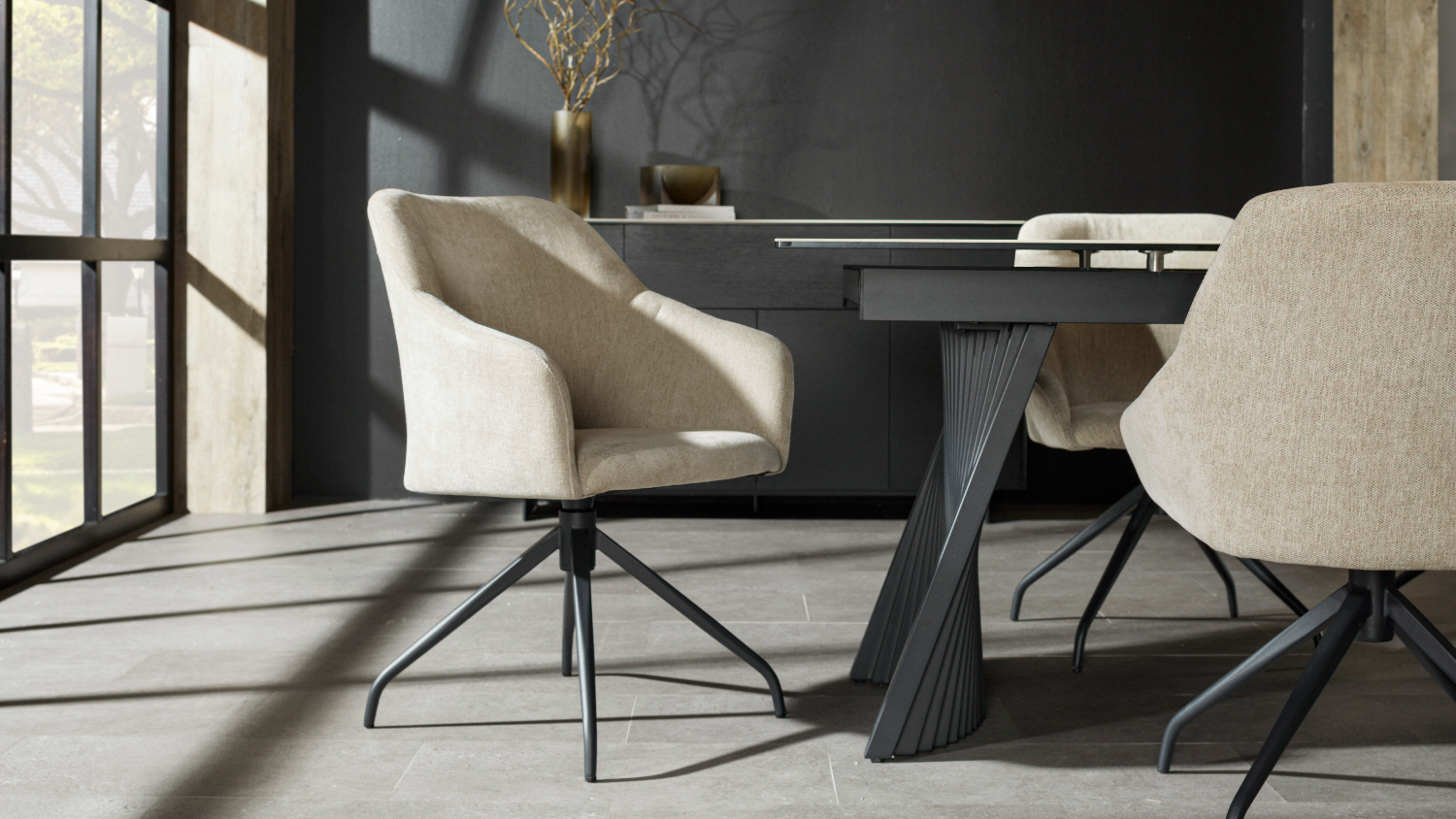 Bring style and flexibility to your table setup with the Dino Carver Swivel Dining Chair. Its sleek silhouette and smooth swivel design provide both comfort and convenience, making every meal feel special. Perfect for dinner parties or laid-back gatherings, this chair’s contemporary charm fits seamlessly into any dining space.