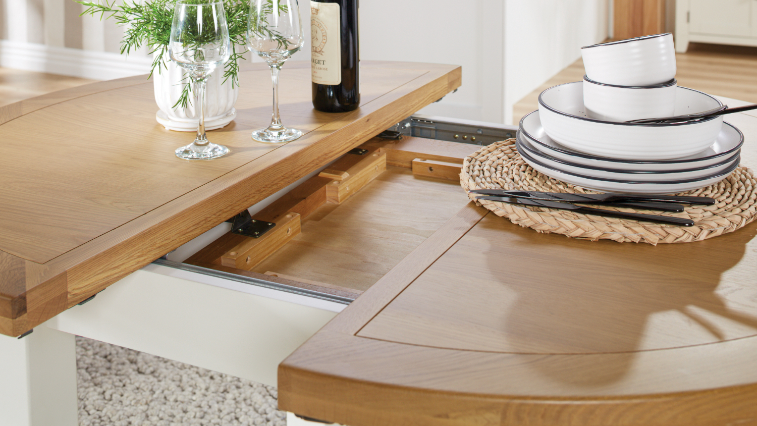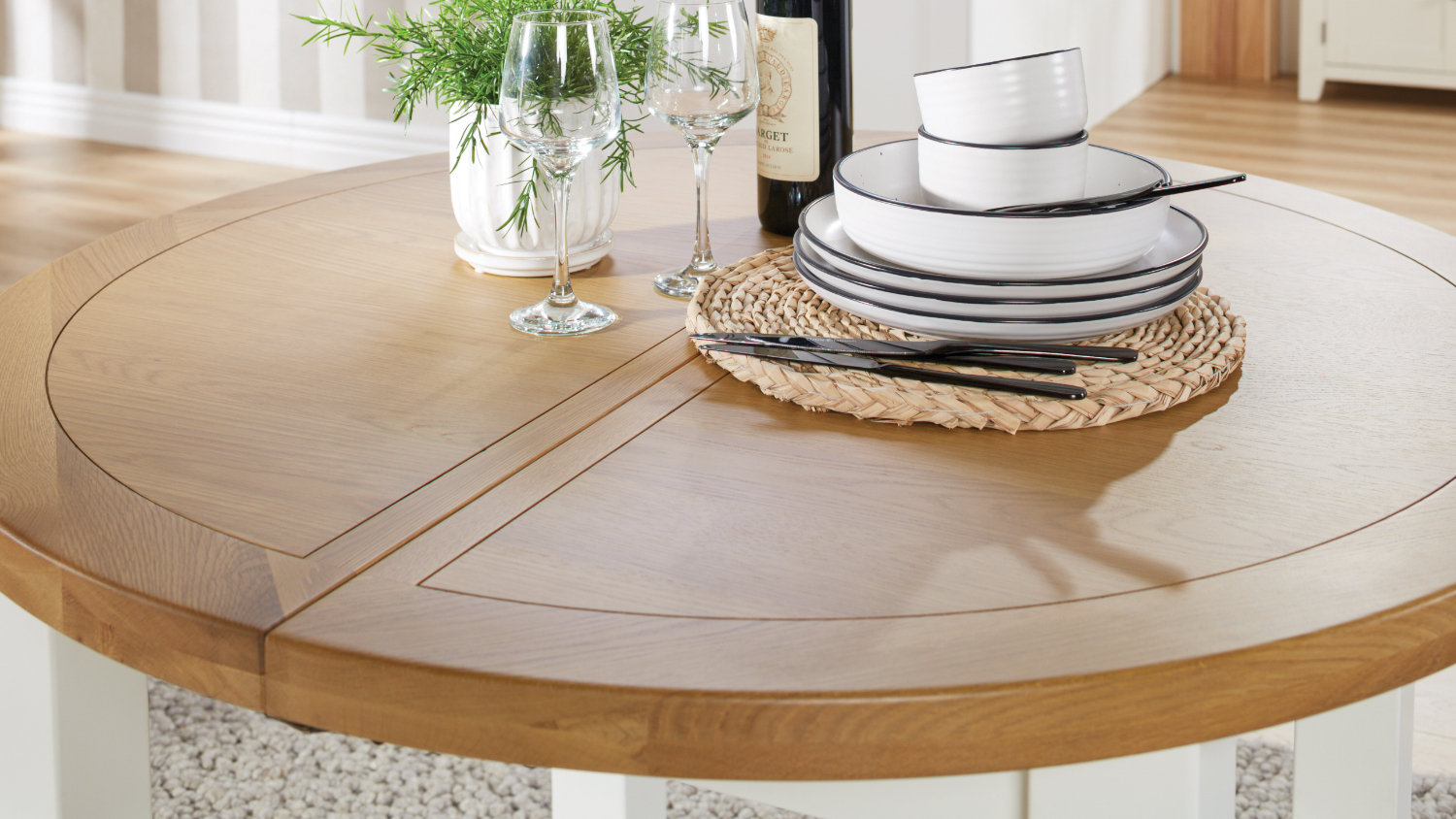 *Please note: Price stated is for one Colchester 5 Piece Round Extension Dining Suite only. Accessories and other products not included.