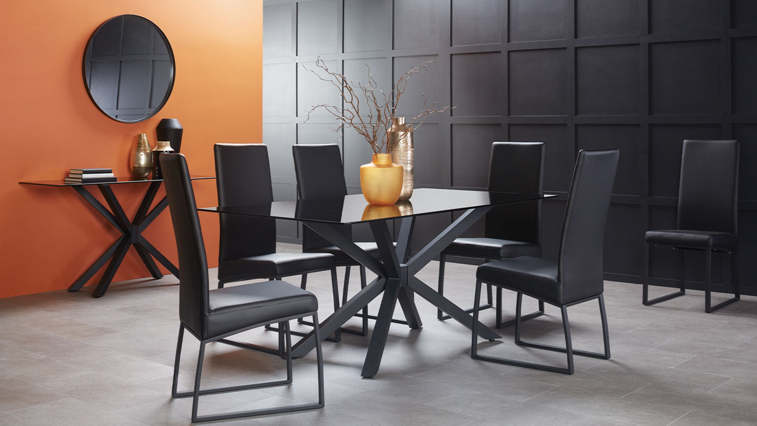 Add a modern flair to your dining room with the Jana 7 Piece Rectangle Dining Suite! The stunning table features a black glass top that creates a bold, stylish statement. It adds depth and dimension, making your dining space look more elegant. Paired with high-back dining chairs that provide plenty of support, this set ensures comfort and sophistication for every meal.