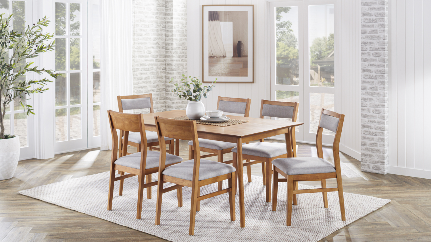 Enjoy cosy mealtime with your family using the Lancia 7 Piece Dining Suite. Boasting a beautifully crafted wooden design, this furniture set is sure to bring warmth and elegance to your space. It also flaunts a spacious table to provide plenty of room for your dishes. Plus, it comes with six upholstered chairs for comfortable seating.