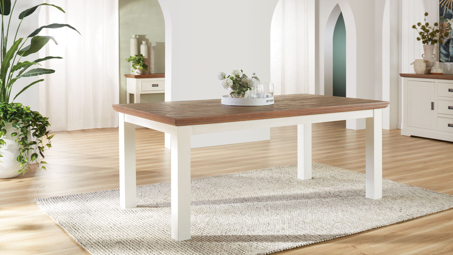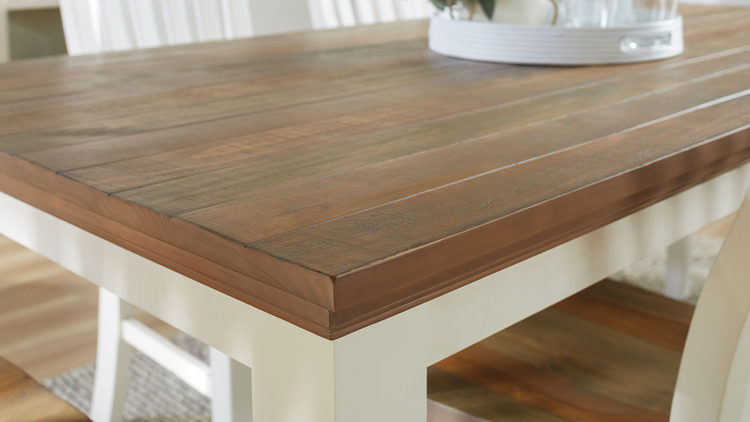 Create a serene and stylish space with the Marlow 1900 Rectangle Dining Table! Featuring a Hampton look with a white painted finish contrasted by a natural distressed top, this furniture is a versatile addition to your home. It is also built from durable solid pine timber, a two-tone design, and natural oak-coloured plank tops.
