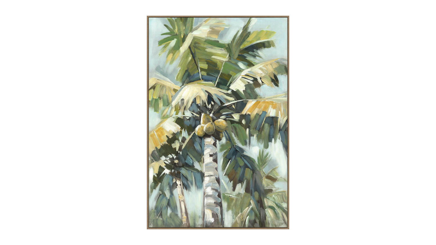 Bring tropical charm to your walls with the Coconut Cache Framed Canvas Set. Featuring lush palm trees and coconuts against a calming blue sky, this 2-piece set adds warmth and style to any space. It’s a perfect choice for new homes or nature-inspired interiors.
