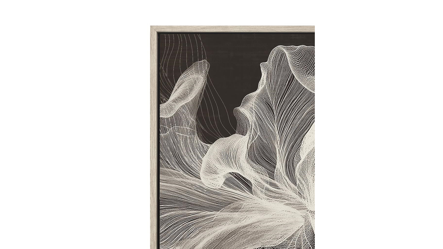 Add dramatic contrast to your décor with the Evolve A Framed Art. This 120 × 120 cm canvas highlights a captivating black-and-white abstract flower, featuring bold lines and rich textures. It combines wood, fabric, and plastic materials, perfect for adding depth and modern elegance to any space.