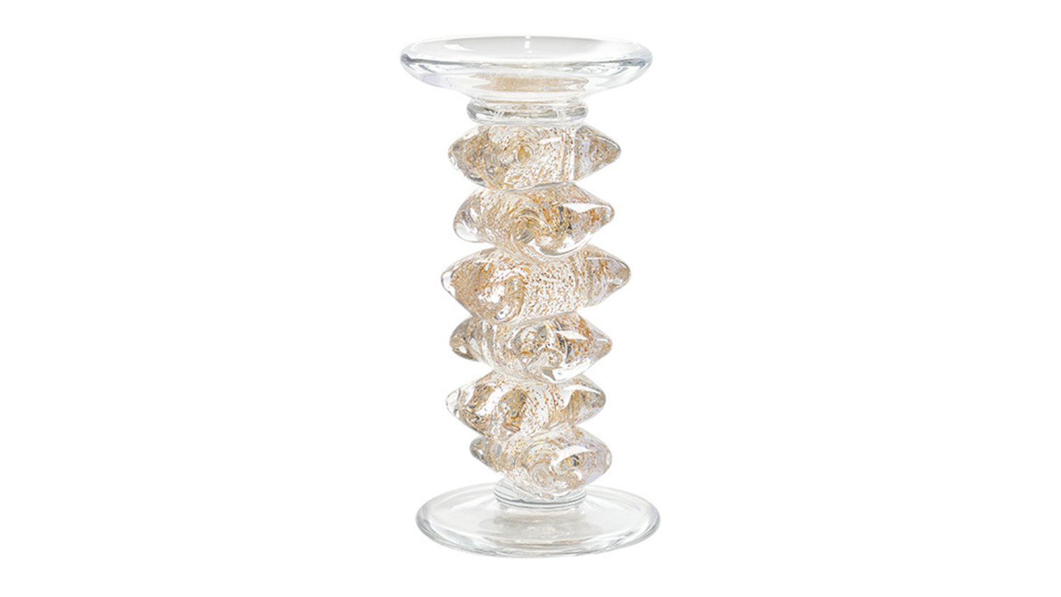 Infuse warm elegance into your space using the Gold Clear Glass Candlestick. Built to enhance your ordinary candlelight, this accessory features interwoven glass details with golden accents that catch the eye. It also boasts a 22.5cm height to bring refined dimension to your everyday home decor or special occasions.