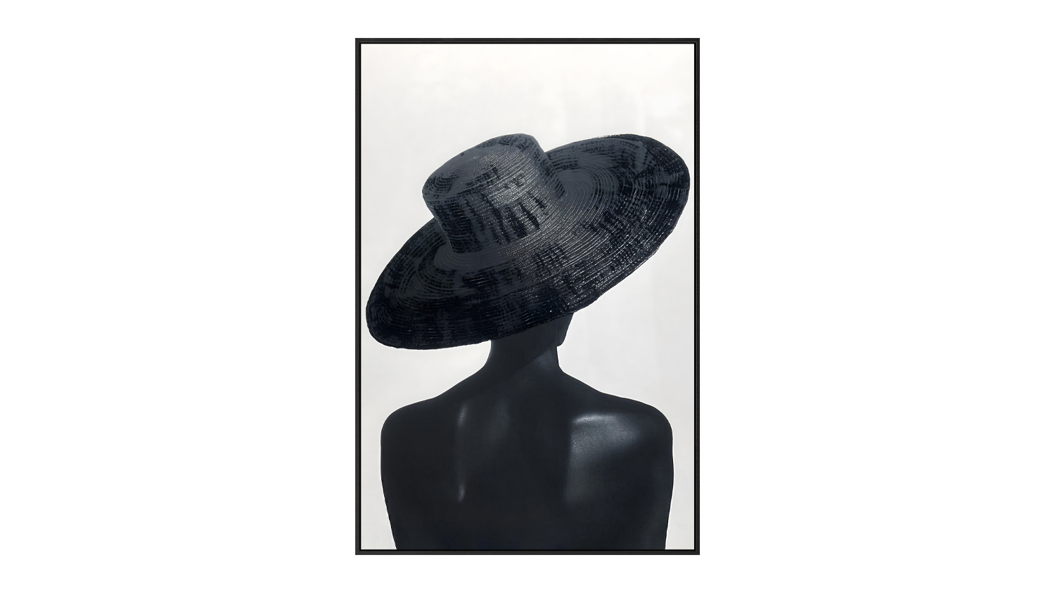 Add a bold, modern, and sophisticated statement to your home with the Missy Framed Canvas. This masterpiece features a dramatic, wide-brimmed black hat perched atop a minimalist black silhouette, creating a powerful contrast against a bright background. It also highlights a vertical format that helps draw your eyes in, making it an ideal focal point for contemporary living spaces, hallways, or offices.
