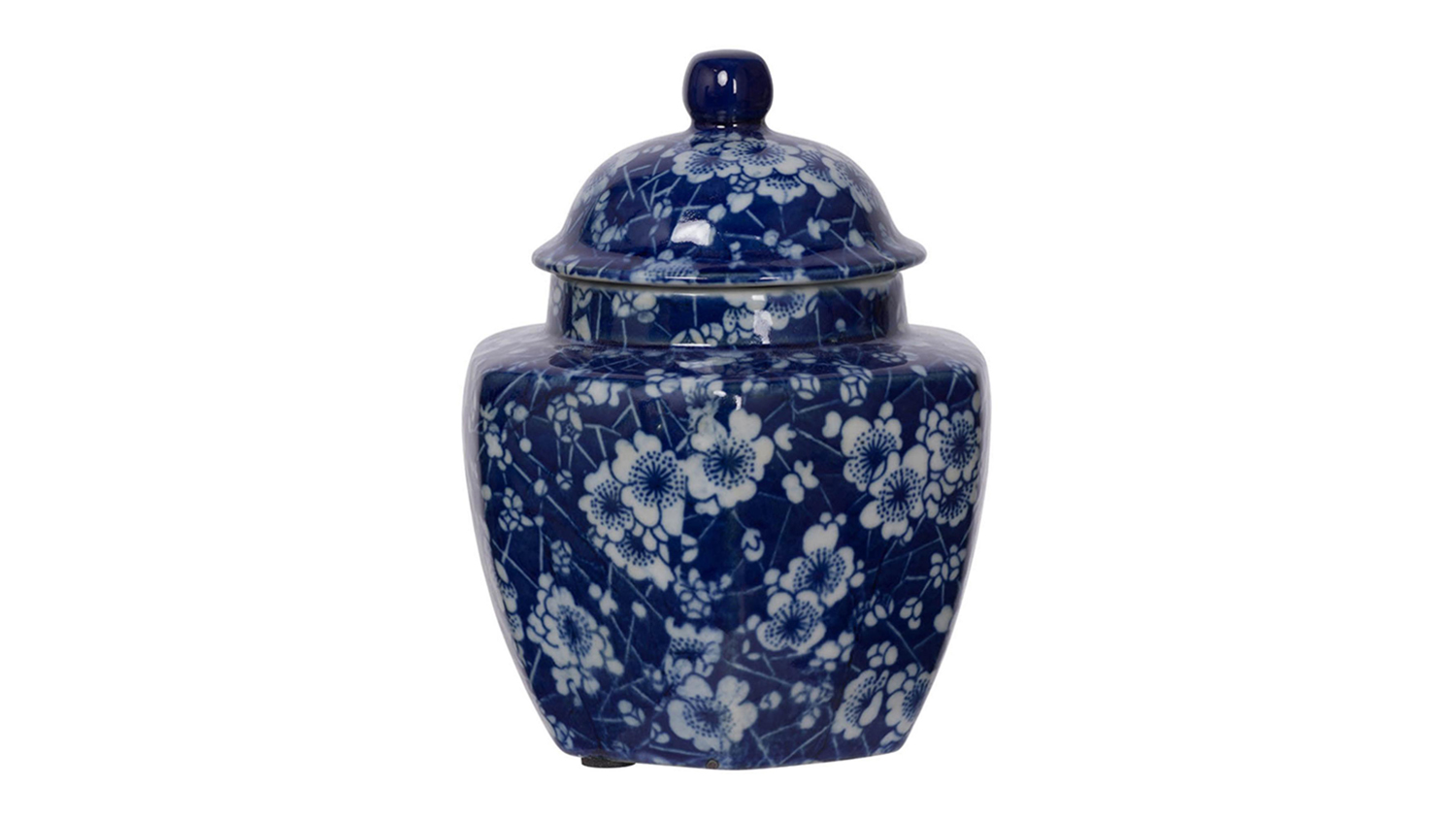 Add effortless elegance to your space with the Rio Blue & White Porcelain Jar. Made from durable, high-quality porcelain, this piece adds a stylish touch to your home. Its timeless ginger‑jar shape and soft floral pattern create a look that stands out beautifully on shelves or tabletops.
