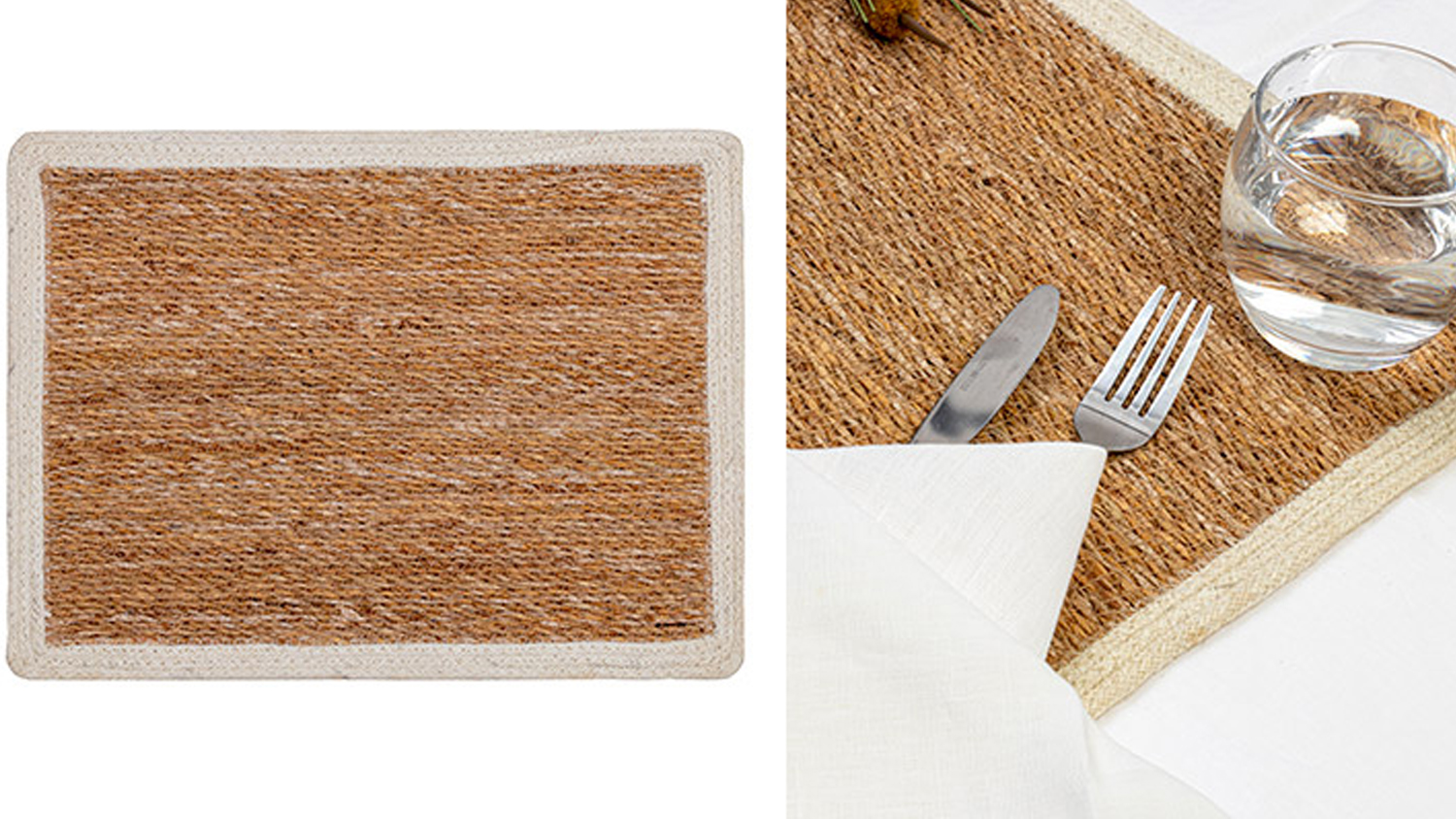 *Please note: Price stated is for one Seagrass/Jute Rectangle Placemat with White Border only. Other items and accessories shown are not included.