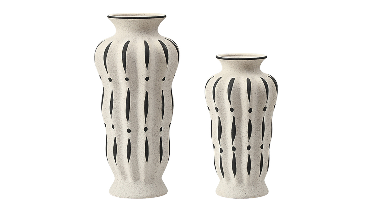 Upgrade your home styling with the Zara Hand Painted Vase. This ceramic decor features sleek black stripes over a matte finish, bringing understated elegance to any space. Designed for dried or faux flowers, it makes a striking statement on its own or as the centrepiece of a styled arrangement.