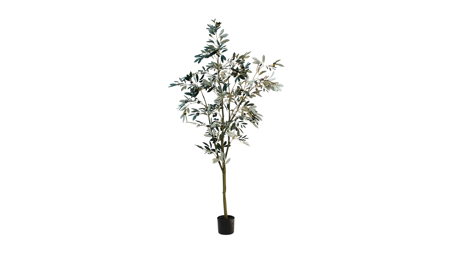 Spruce up any space with the Potted Olea Olive Tree 180cm! Boasting beautiful grey-green fabric leaves adorned with realistic olives, this tall artificial plant adds instant sophistication to your living room. Plus, the classic black pot complements any décor.