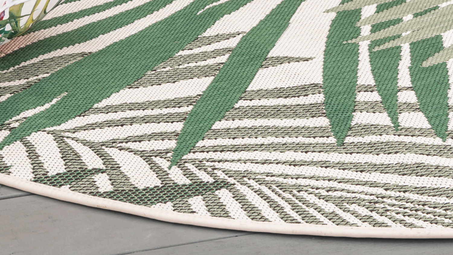 Add a breezy, tropical charm to your space with the Canopy Outdoor Round Rug. Its flatweave design and cream and green tones blend beautifully with outdoor furniture or indoor décor. Crafted from 100% polypropylene, it’s durable and easy to keep clean.