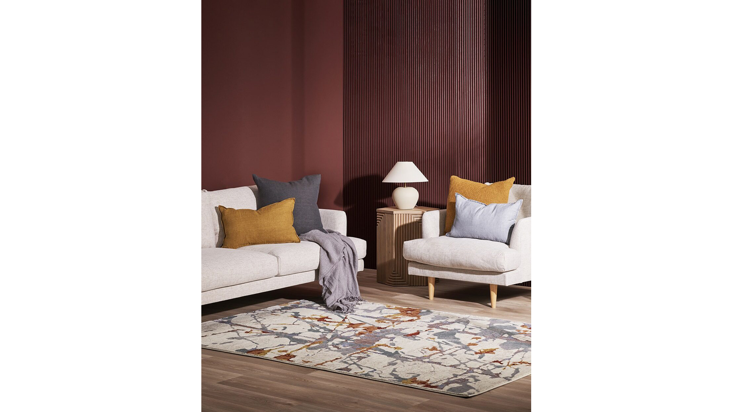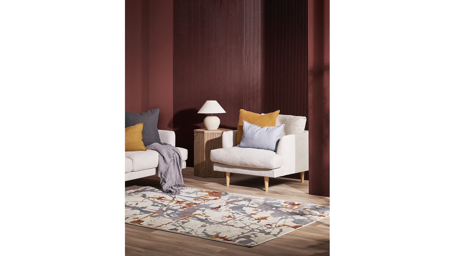 Upgrade your space with the artistic charm of the Delauney Rug 160 x 230cm. Featuring abstract splashes of ivory, cloud blue, silver, and rust, this piece adds personality wherever it’s placed. It’s also crafted in Egypt from sturdy polypropylene with a 9mm pile, perfect for busy homes and effortless upkeep.