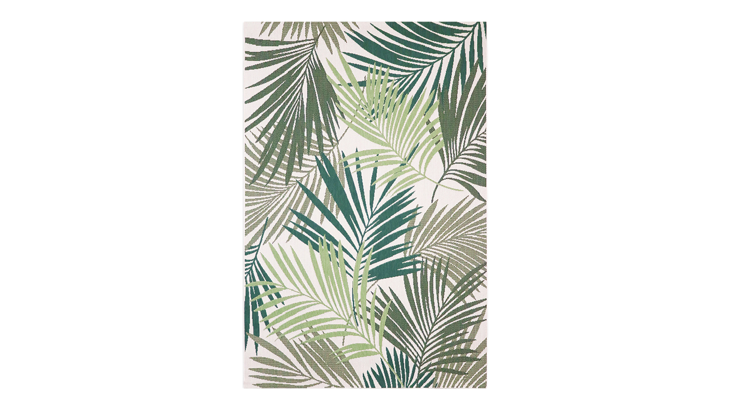 Bring a touch of the tropics to your outdoor space with the Hokitika Outdoor Canopy Rug. Its fresh cream and green palette, as well as modern flatweave design, blend beautifully with any décor. Made in Belgium from durable polypropylene, it’s built to handle busy areas and is a breeze to maintain.