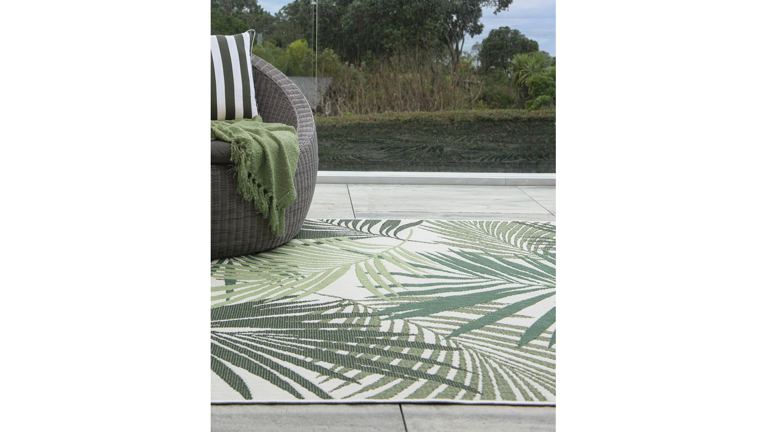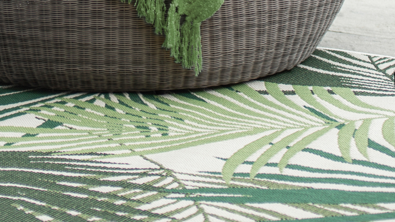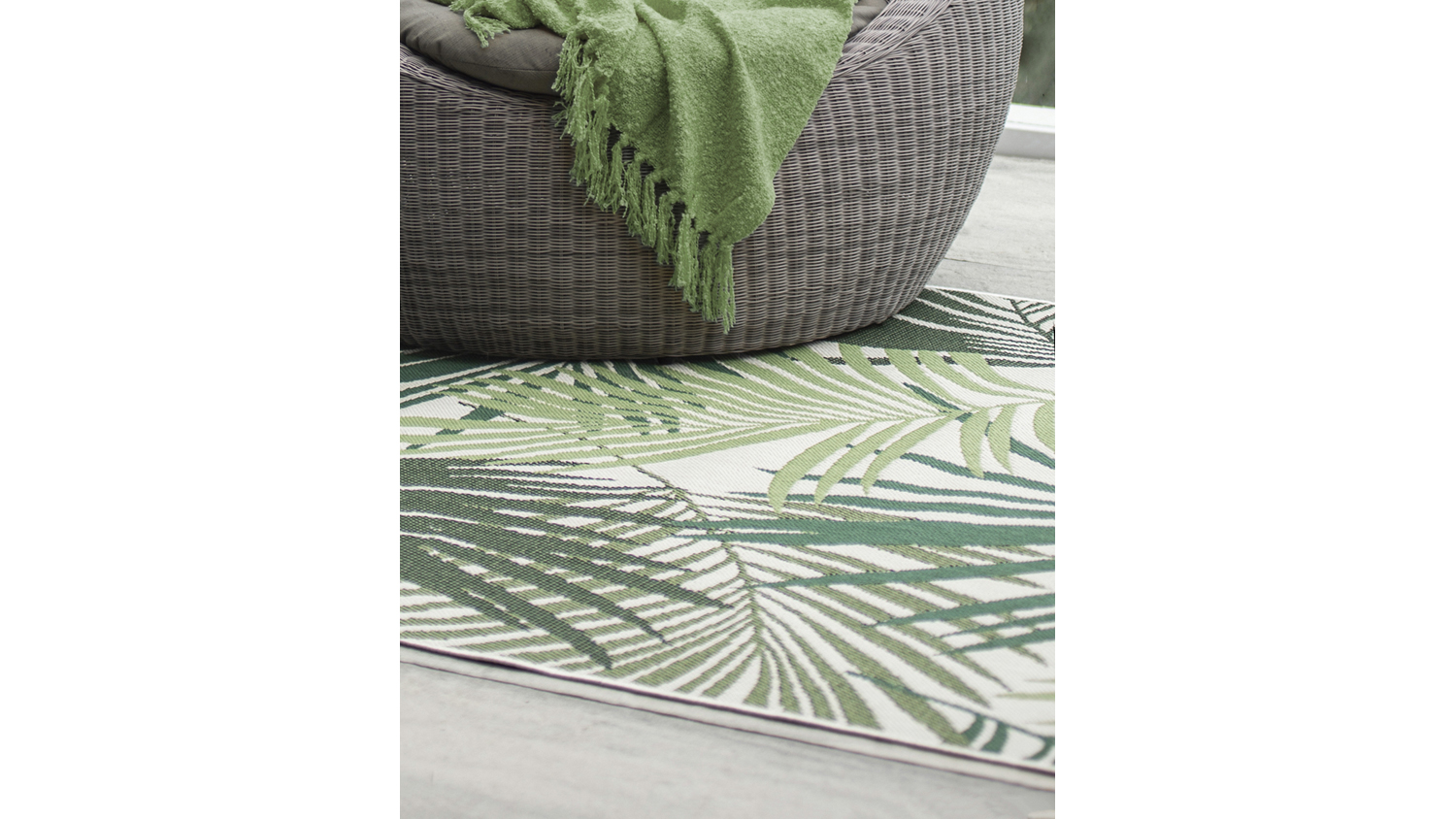 Bring a touch of the tropics to your outdoor space with the Hokitika Outdoor Canopy Rug. Its fresh cream and green palette, as well as modern flatweave design, blend beautifully with any décor. Made in Belgium from durable polypropylene, it’s built to handle busy areas and is a breeze to maintain.