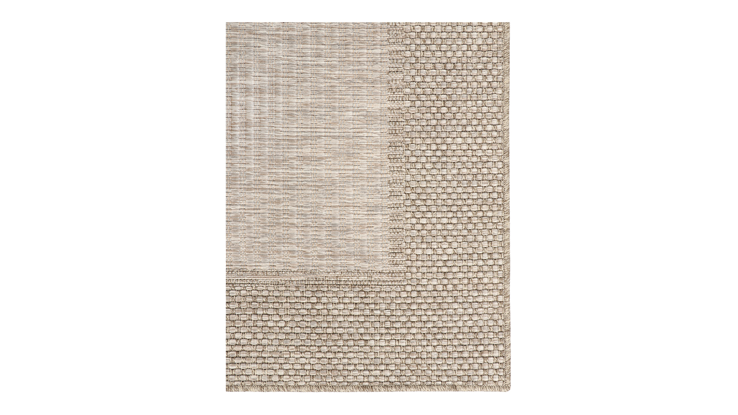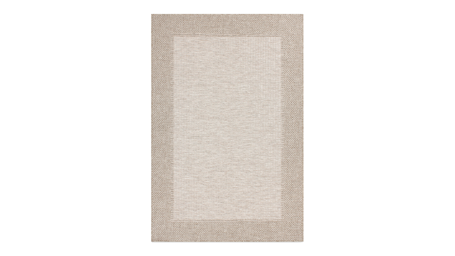 Style your home with the understated elegance of the Whitby Outdoor Rug 200 x 290cm. This functional decor features a classic border design and soft neutral tones, creating a timeless piece fit for any outdoor or indoor area. Plus, it highlights a 9mm depth and a subtle texture, so it's comfortable to walk on.