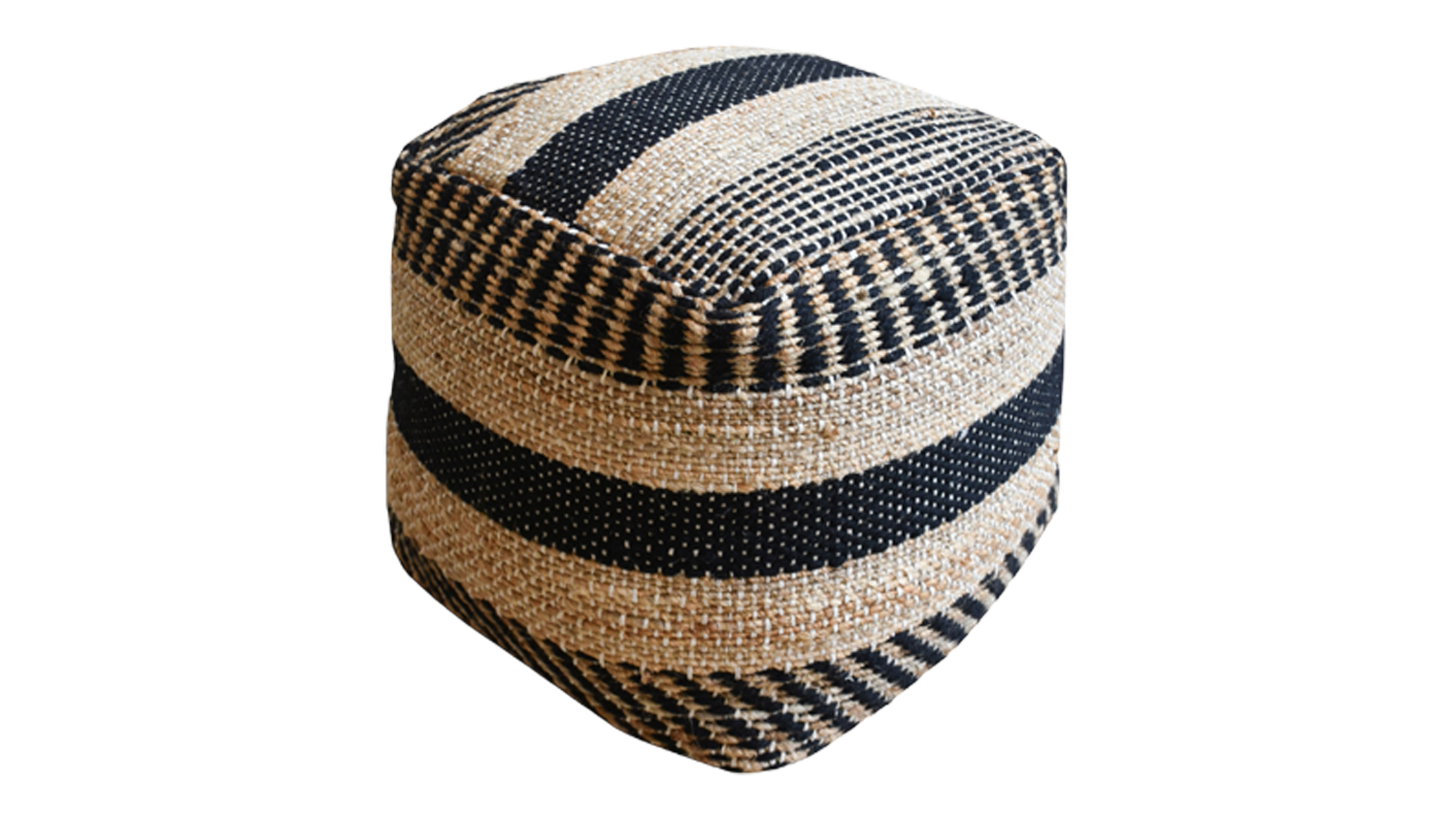 Add a touch of trendy comfort to your space with the Dennington Charcoal/Natural Pouf. This versatile ottoman is perfect for extra seating, resting your feet, or enhancing your décor. Featuring a woven stripe pattern and crafted in India from durable materials, it offers long-lasting style and everyday functionality.