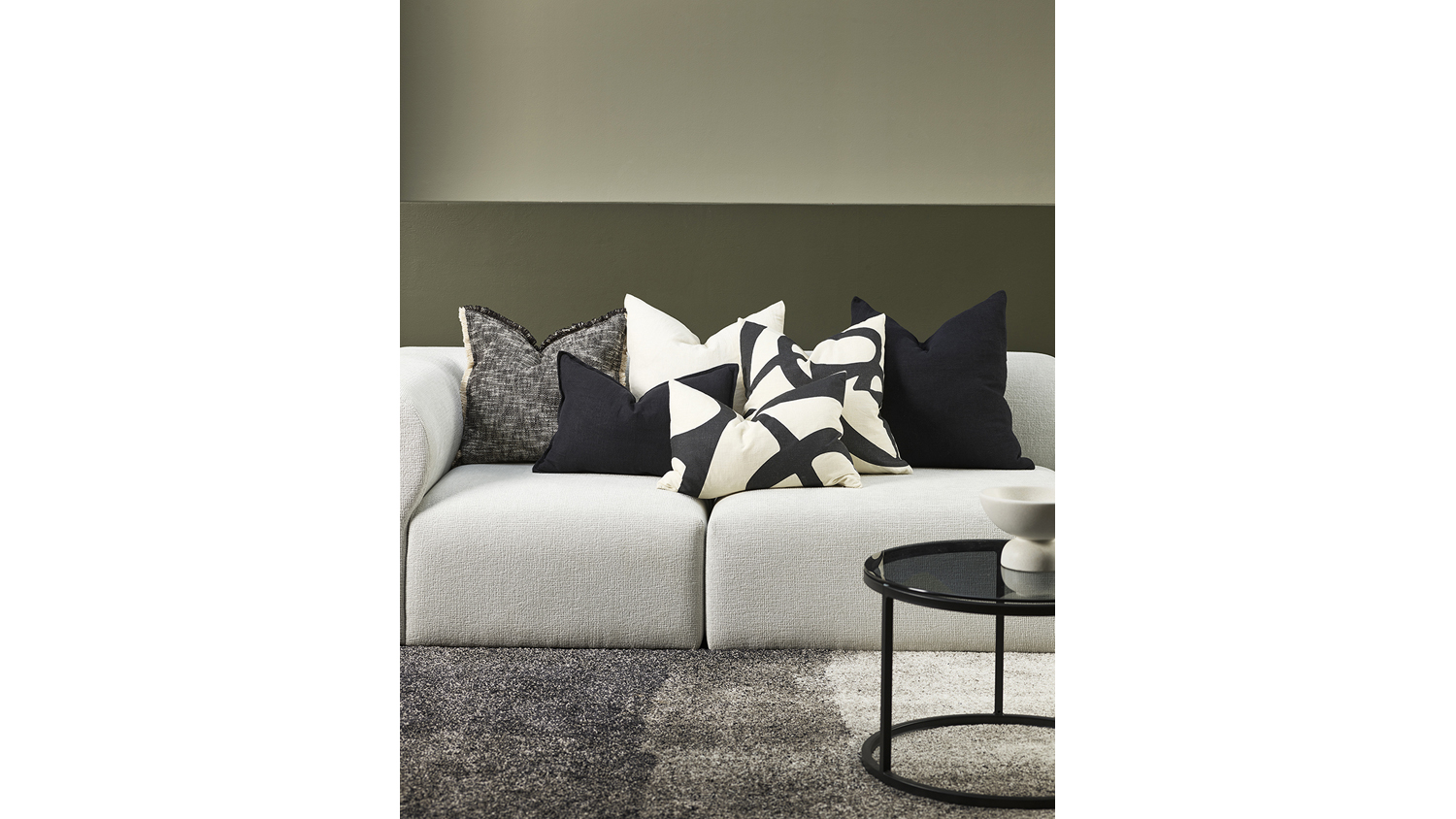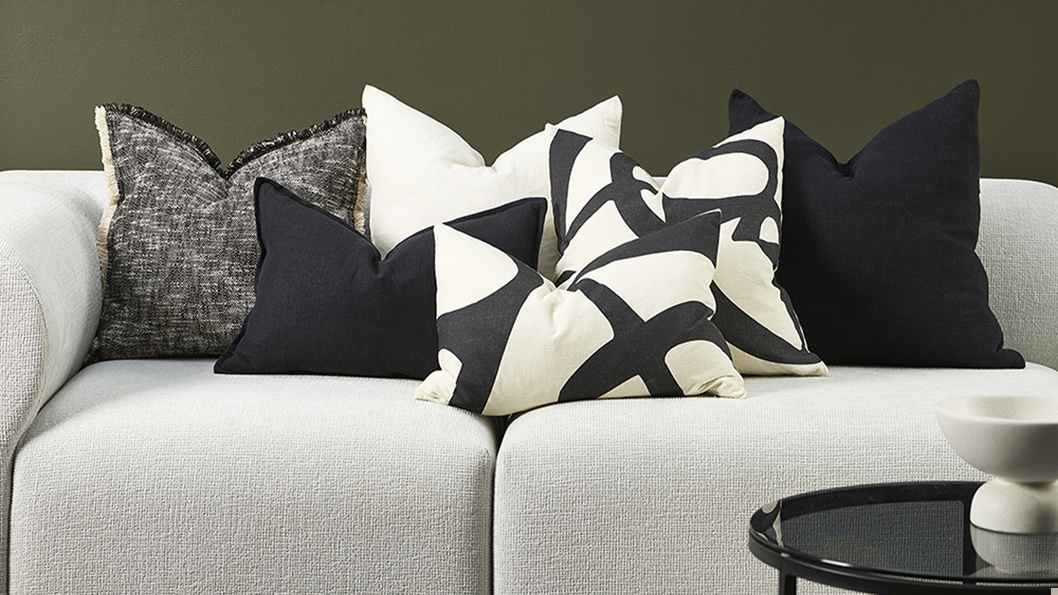 Add a modern, artistic touch to your home with the Amara Cushion in Ivory. Featuring a bold, one-sided screen print on premium cotton, this cushion becomes a graphic centrepiece in any living space. With its feather-filled interior, it also provides plush comfort. Use it to accentuate your sofa, armchair, or bed!