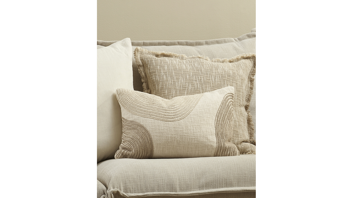 Bring coastal charm to your home with the Amber Feather Cushion. Made in India from 100% cotton with a feather fill, this pillow is a versatile and durable addition to your décor. It features refined cord embroidery on a textured cotton base, with soft, neutral tones that create a calm and stylish vibe.