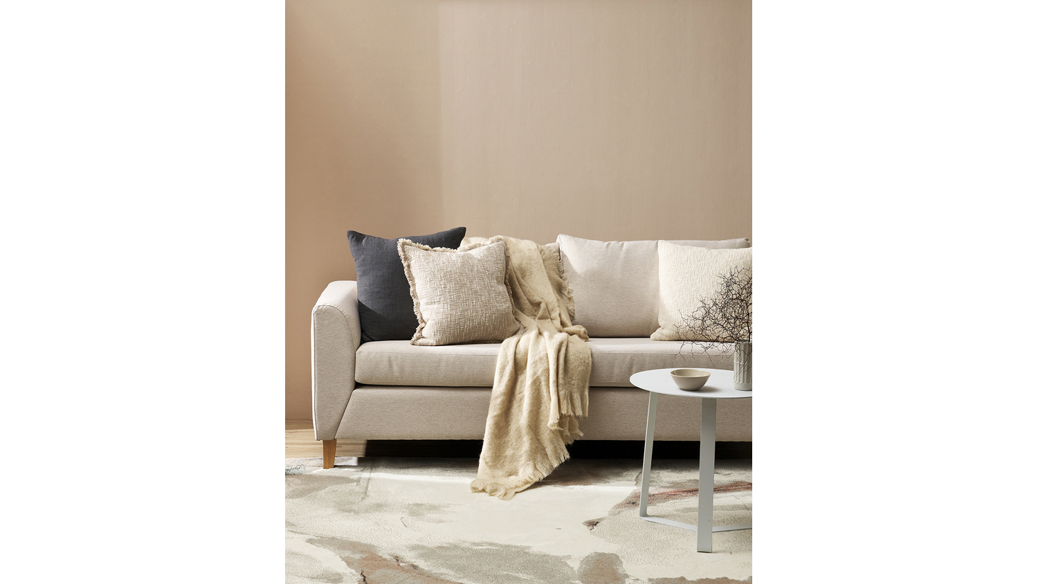 Introduce warmth and comfort to your home with the Fiesta Throw. Crafted from a soft, brushed acrylic reminiscent of mohair, this functional decor is an invitation to cosy up. It is also finished with a fringed edge for a classic flair. Plus, this piece showcases a beautiful doeskin shade, so you can easily coordinate it with various cushions.