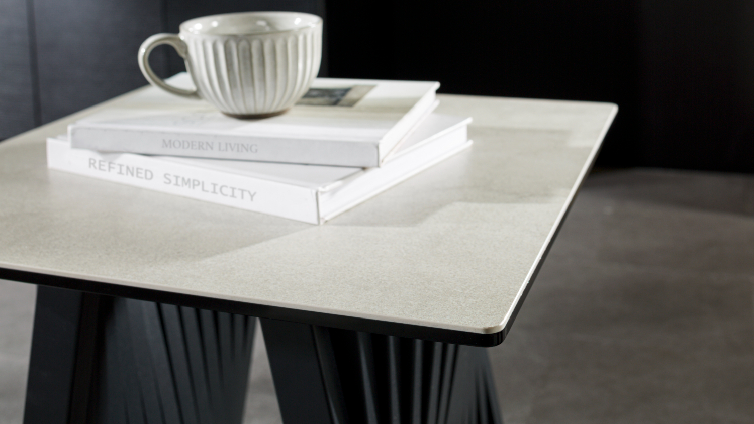 Combining modern elegance with everyday functionality, the Afinity Side Table is a perfect addition to any space. This unit boasts a ceramic tabletop protected by tempered glass, offering a durable and stylish surface for your essentials. Supported by sturdy metal legs, this piece is built to last.